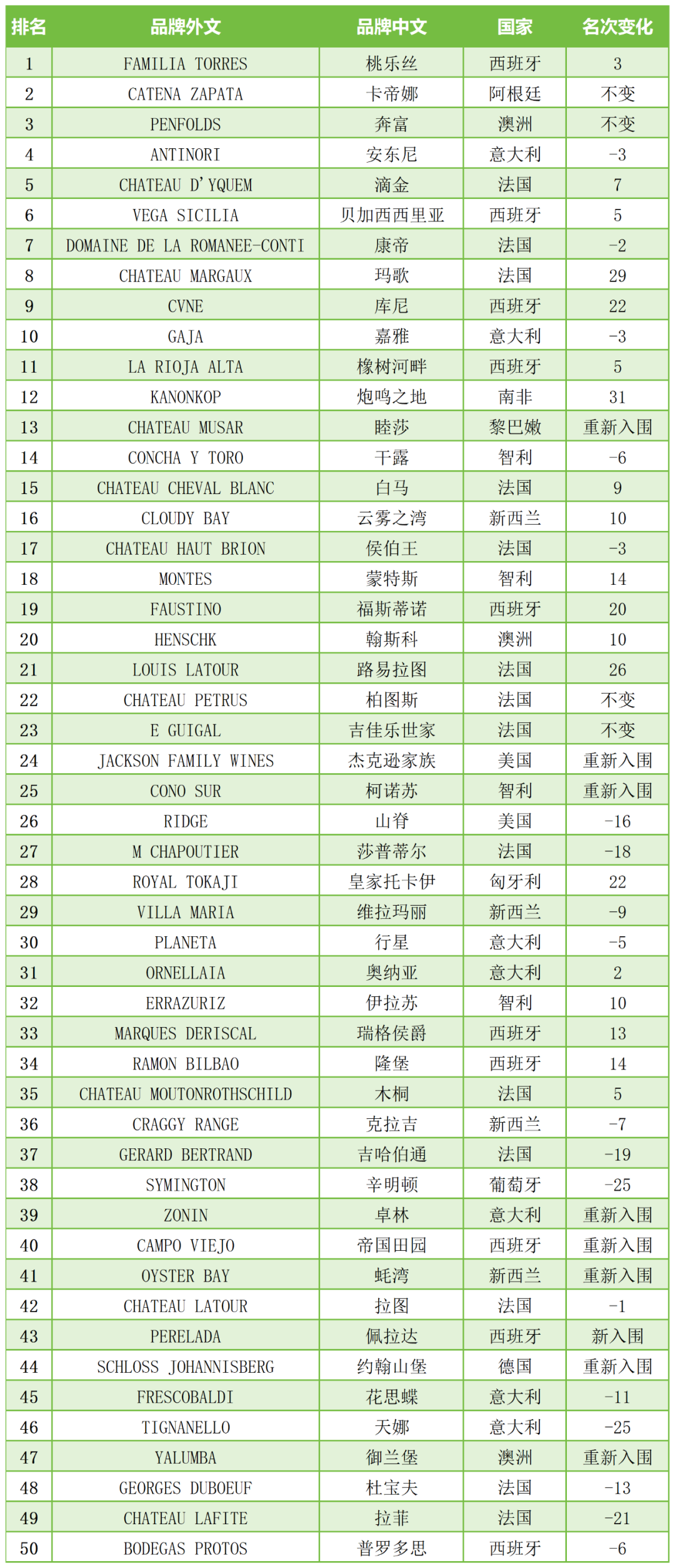 每年,酒业国际权威杂志《国际酒饮》(Drinks International)都会评出全球 50 大受推崇的葡萄酒品牌,今年也不例外,结果正好于近日公布。点击图片可放大查看