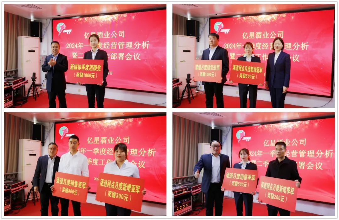 会议对2024年3月份和一季度销售竞赛获奖的门店、部室和个人进行了表彰和颁奖。