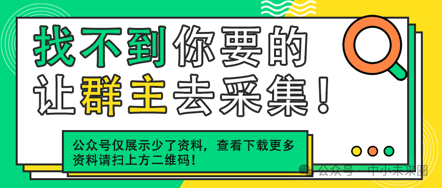 中小未来圈:总收录资料30万+,600+专题合集,涵盖各行业报告、创业、品牌、内容、流量、电商、营销、人工智能、黑科技、策划方案、政策、工具、企业管理、股权....你感兴趣的,你需要的,你想要的,也许这里都有!资料持续更新....