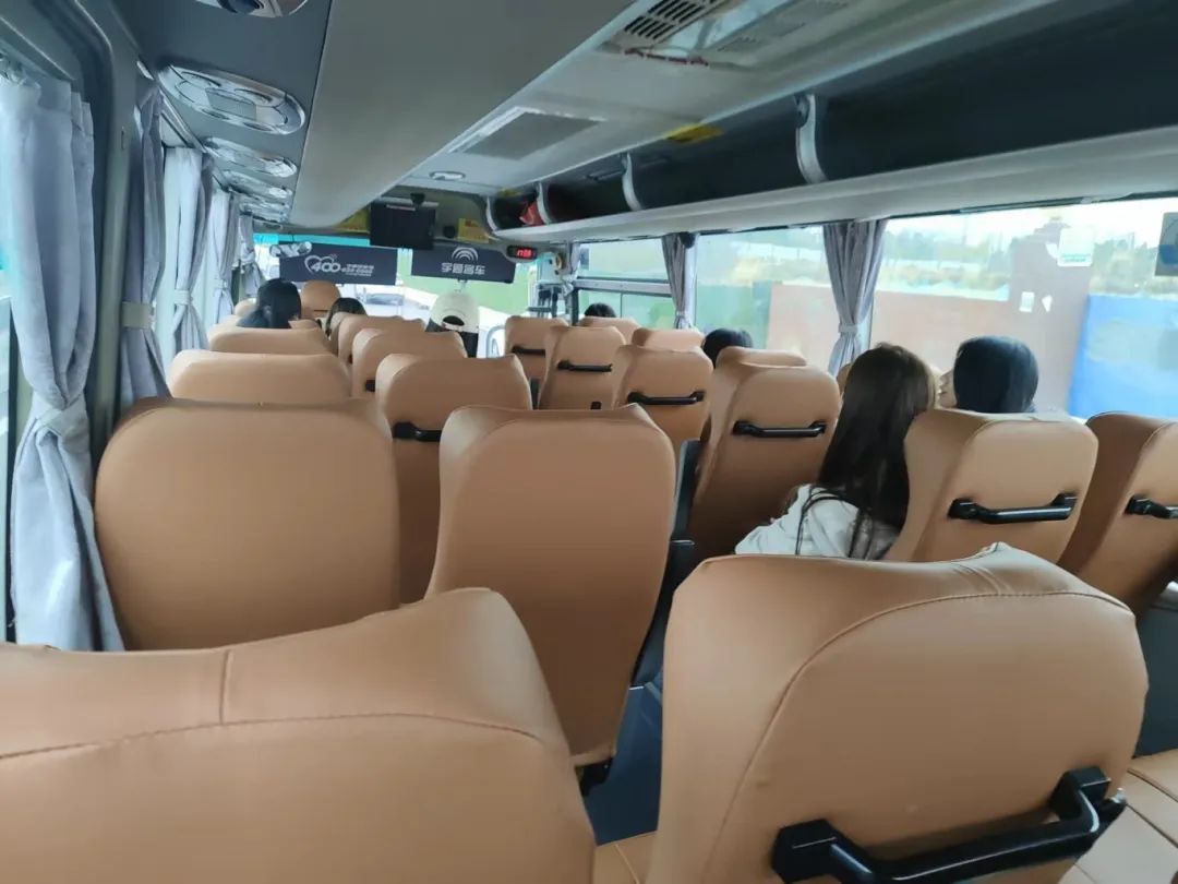 志愿者们到达学校正大门集合,乘坐各自的大巴车,兵分两路去往西博城和世纪城。