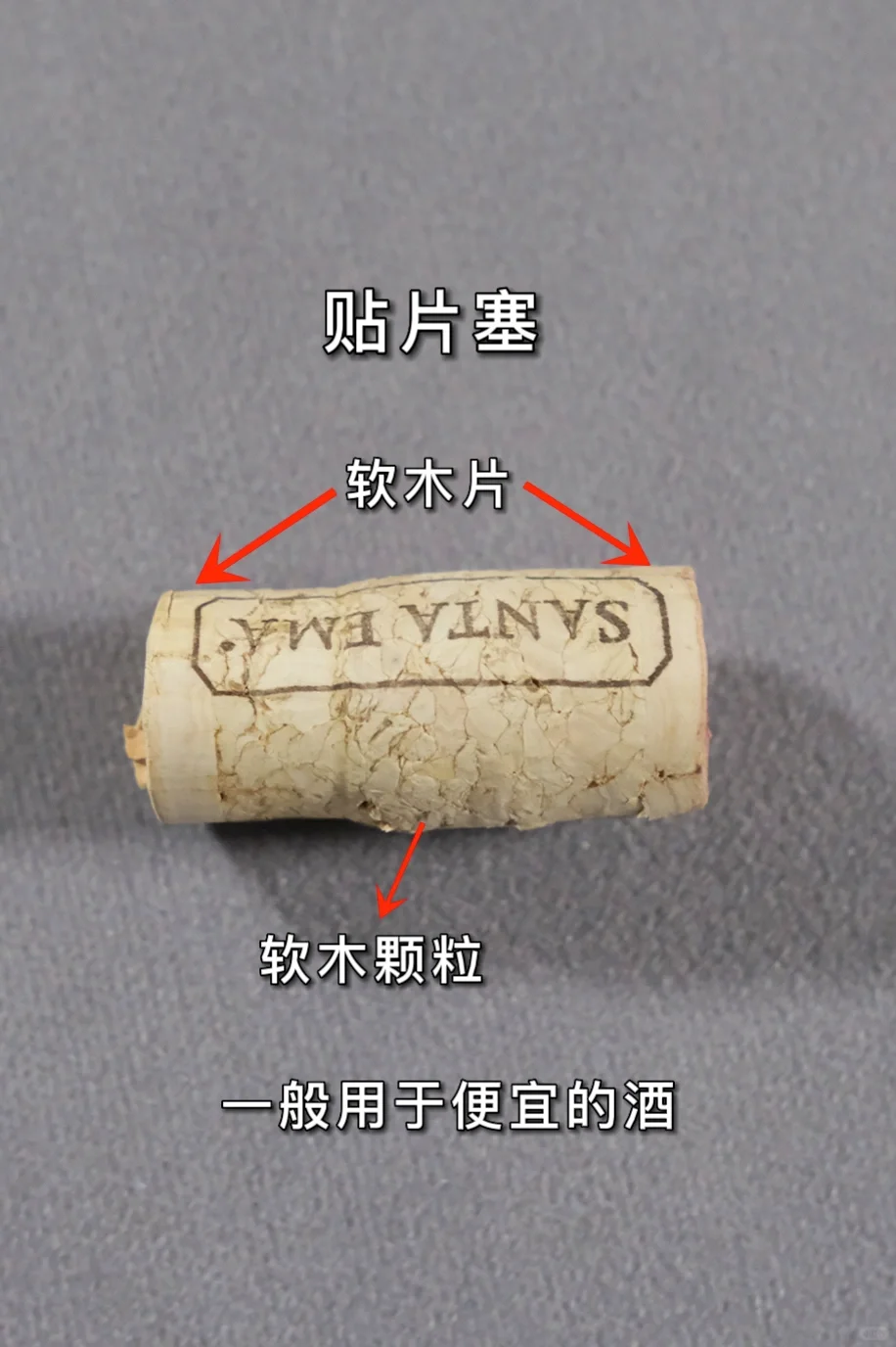 中间是软木颗粒,两边是软木片。一般是有性价比的酒用,比如这款智利酒。