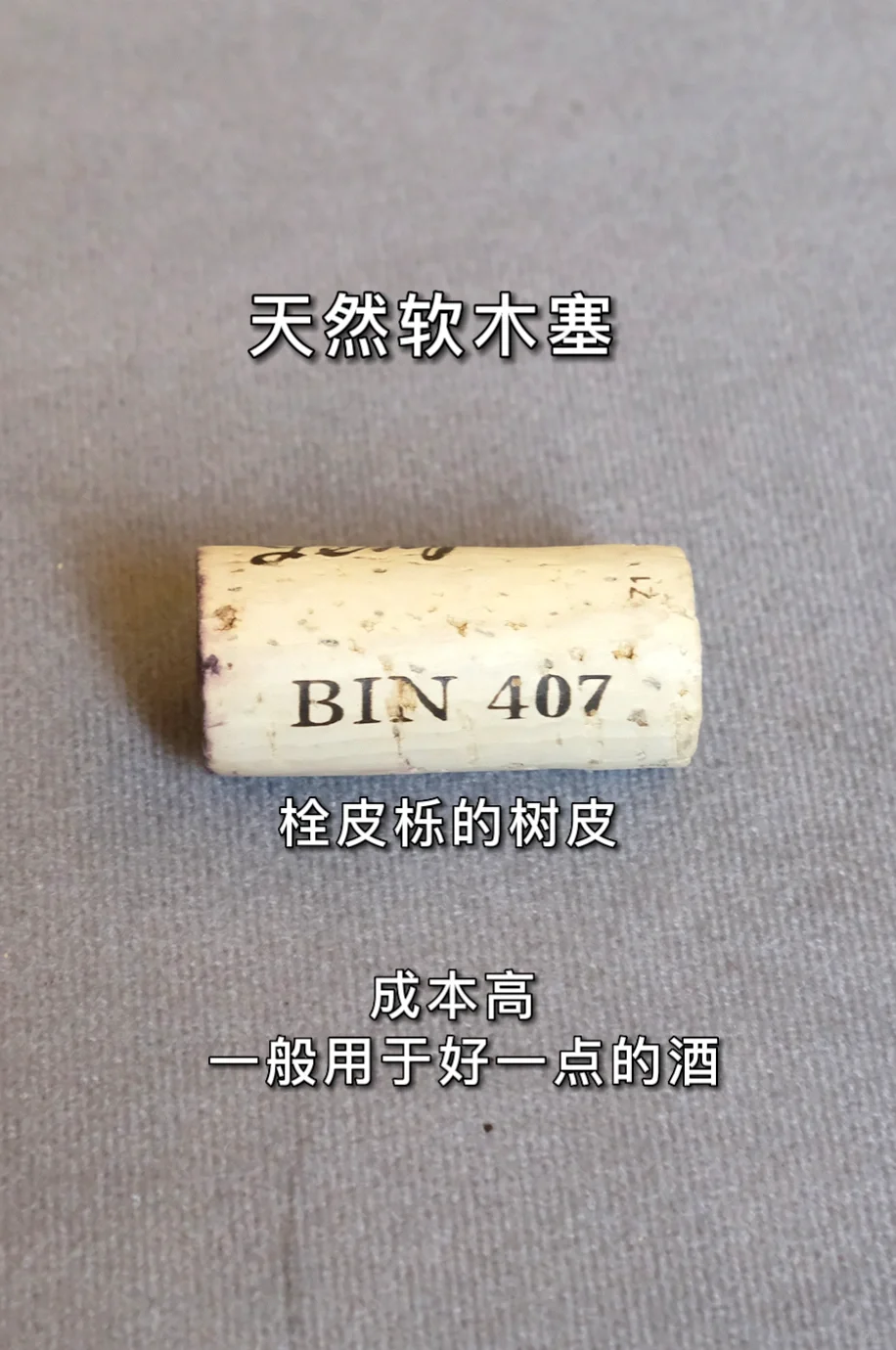 天然塞原料来自于栓皮栎的树皮。标准直径24mm,长度有38mm、44mm、49mm等。孔隙越少越小,质量则越好,品相分为分为花级>超级>TE级>一级>二级。