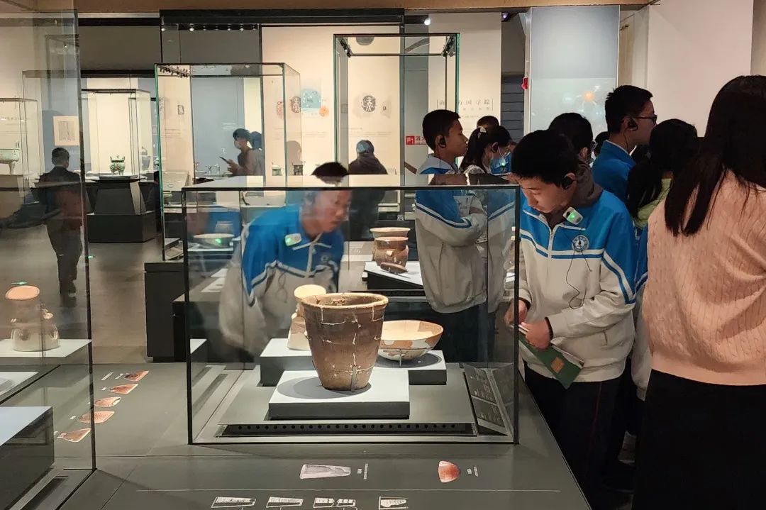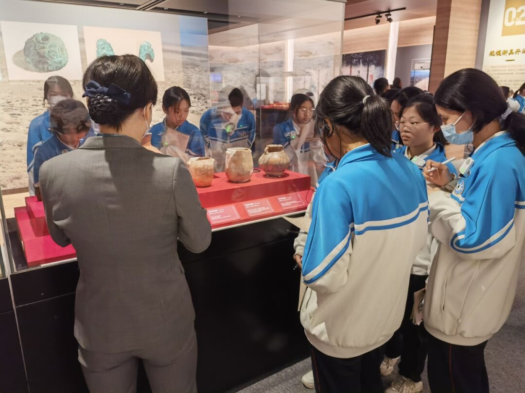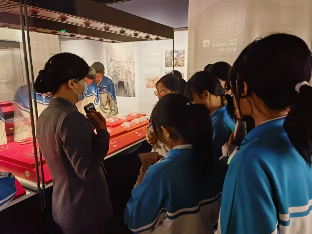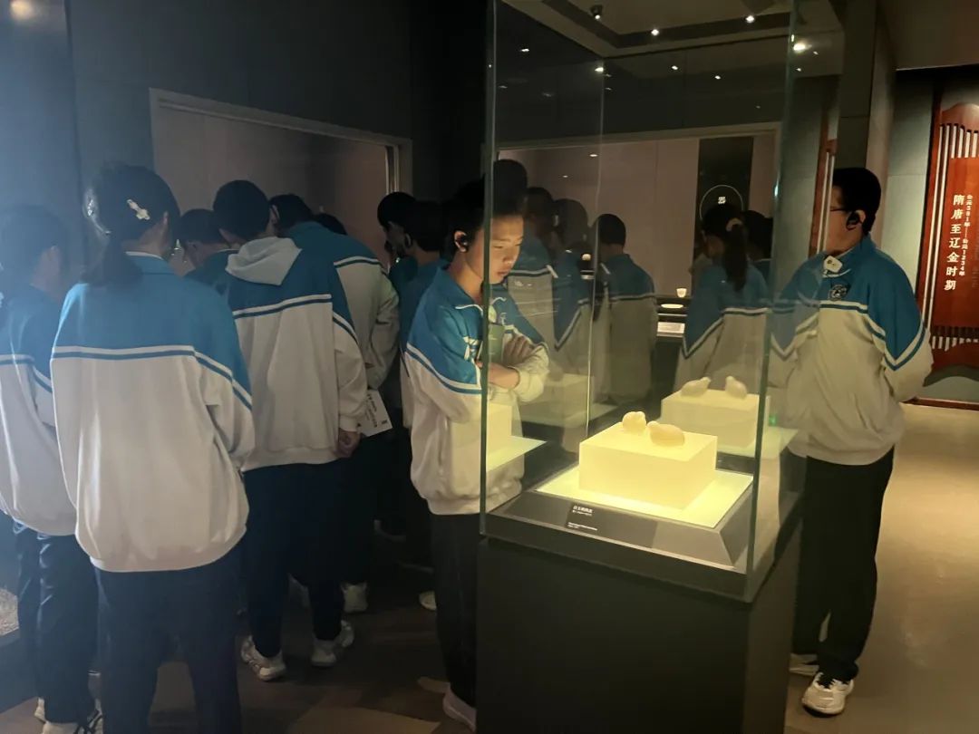 随后,同学们前往了通史陈列展。通过讲解了解到史前到辽金的变迁历史文化。学生们全神贯注地欣赏着古代的工具,不由地感叹古代劳动人民的伟大智慧。