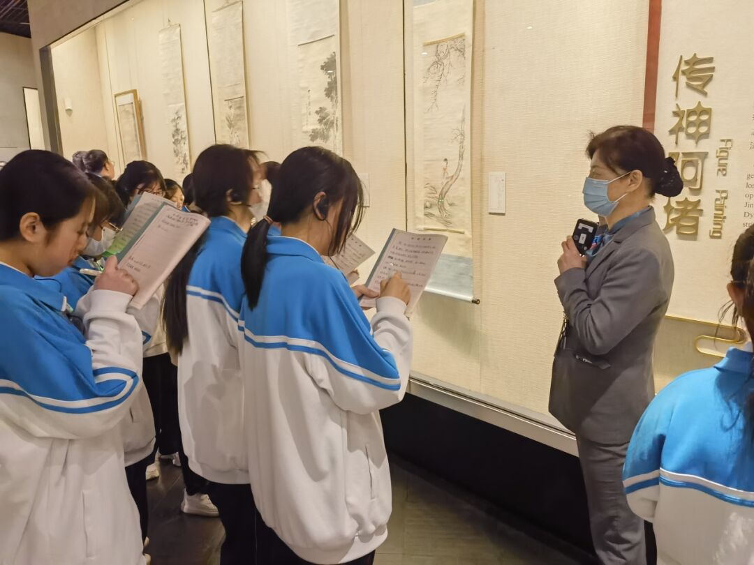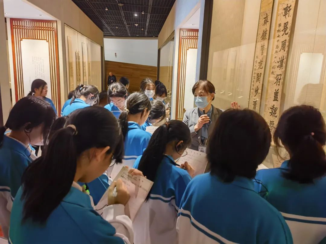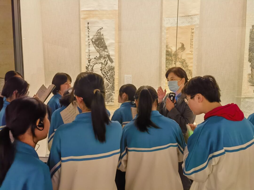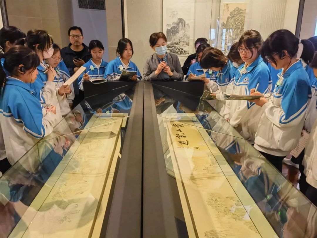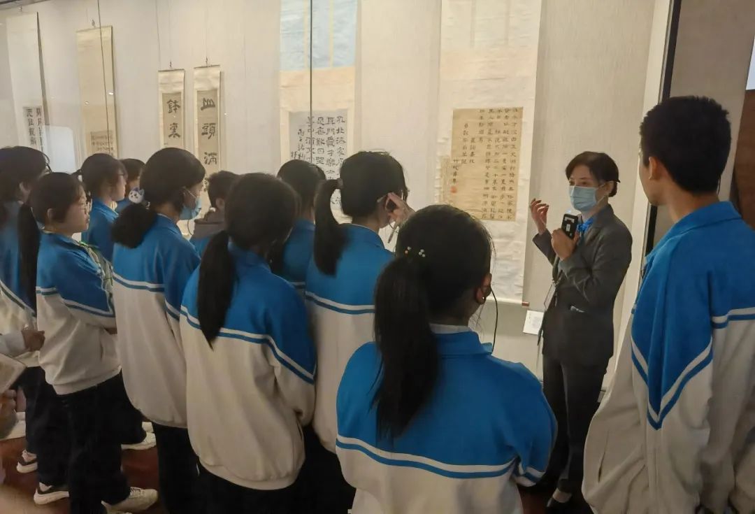 在首博老师的带领下,同学们井然有序地参观了金石书法和近现代名家绘画作品展。穿梭于瑰丽多姿的展厅中,同学们津津有味地聆听老师声情并茂的介绍,逐渐了解金石书法和绘画的历史渊源和独特之处。讲解员会详细介绍起源、发展以及不同的艺术风格,让学生对这些古老的艺术形式有了更加深入的了解。