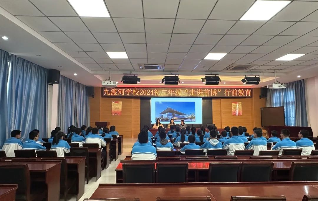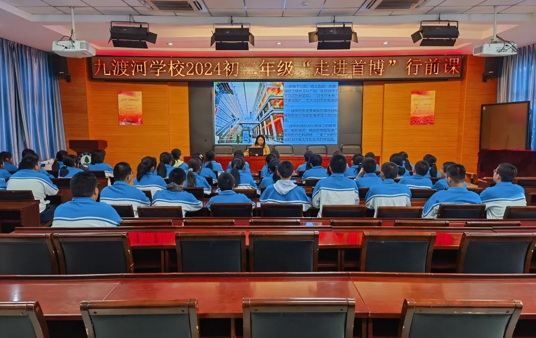 4月8日下午的行前课上,历史杨老师向学生介绍了首都博物馆以及将要学习的知识,指导学生实地学习方法,明确活动学习任务。在行前教育中,政教处彭主任介绍了参观活动的流程,强调了参观活动过程中的注意事项。初二年级组长李老师强调活动纪律要求、文明要求、安全要求。