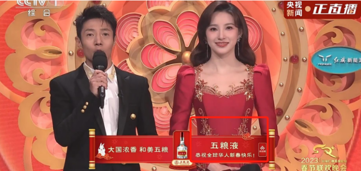 今年春晚,五粮液以春晚独家互动合作伙伴的身份亮相,在四个多小时的春晚节目中,通过4轮互动环节相继抽奖发送了总价值一亿元的五粮液产品,奖品分别为经典五粮液、第八代五粮液以及39度五粮液。特别是在春晚直播时,由于品牌名称字幕恰好对应主持人画面,被观众直接来了次二次传播。