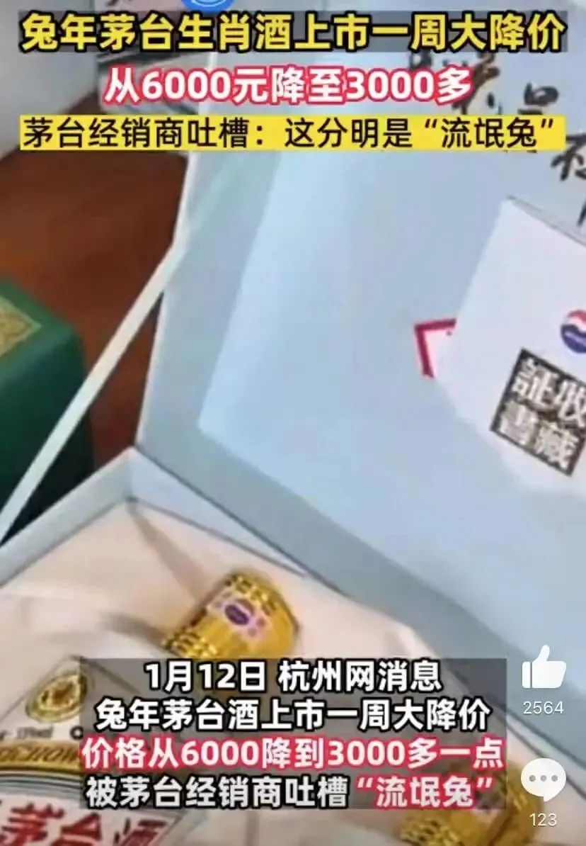 大家都是酱香酒,凭什么你是液体黄金,是奢侈品,而我却只能论为平庸大路货?茅台远超出同行的品牌溢价,除了特殊的红色历史,另一个原因就是,产能问题。在50年代,茅台由于产能落后,5个酒灶,一年只能产六七十吨酒,这就造成了稀缺状态。1988年之前,茅台都是特供酒。分为“特需酒”、“外需酒”、“内销酒”三类,用于高级政务、外交、军队等场合。但现在,随着产能提升,产量早已不再是问题,稀缺与否完全取决于茅台自身的放量调节。以前几天被经销商大骂为流氓兔的生肖酒“兔茅”为例。1月初,“兔茅”首发开卖,官方市场指导价2499元/瓶,一度被炒到接近6000元的高度。结果上市不到一周就价格腰斩,降到3000元出头。