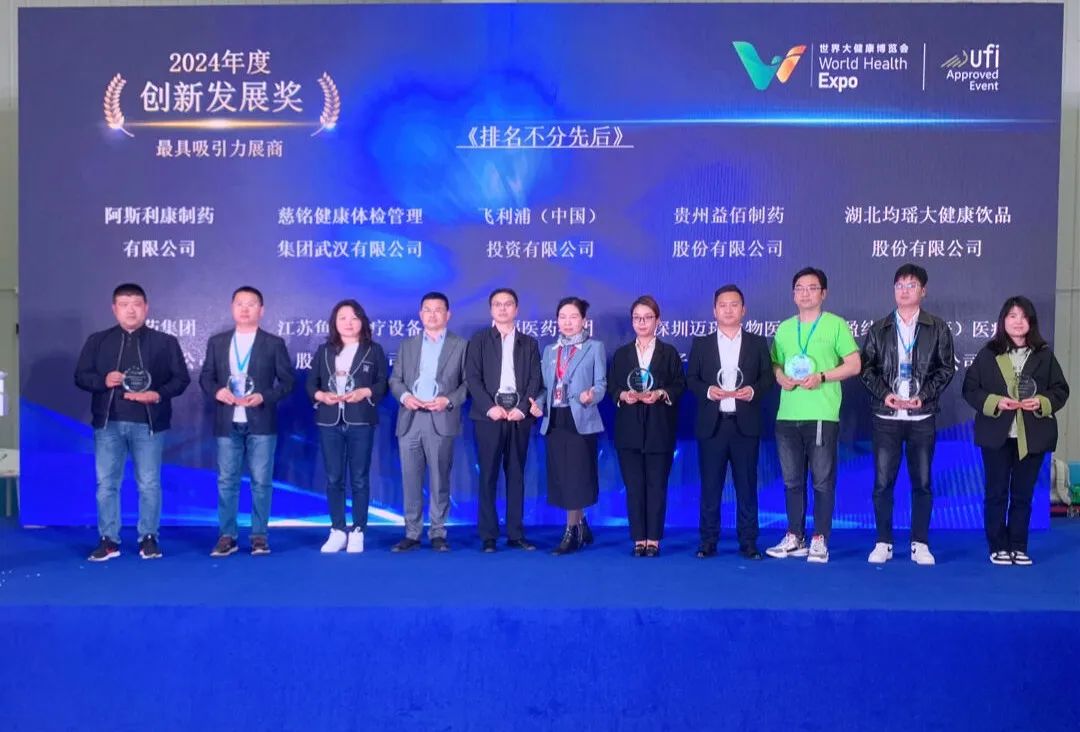 湖北均瑶大健康饮品股份有限公司和宜昌人福医药股份有限公司凭借独到的视角和前瞻性思维,以开发的一系列创新产品和服务,得到了市场的一致认可,荣获2024年度最具吸引力展商“创新发展奖”。 本届博览会整合内外优质资源,覆盖大健康全产业链,以“健康共同体 科技创未来”为主题,在为期四天的展会中,为展商和观众呈现了一场专业、高品质的大健康产业上下游盛会。宜昌18家展团精心组团参展,促进交流合作,携众多大健康好物新品亮相展会,集中展示宜昌大健康产业的优质品牌和特色产品,借力持续提升“健康宜昌”品牌知名度。在康养器材体验区,参展观众一边沉浸式体验,一边不住地称赞:“这是真正的高科技,惠民生!”