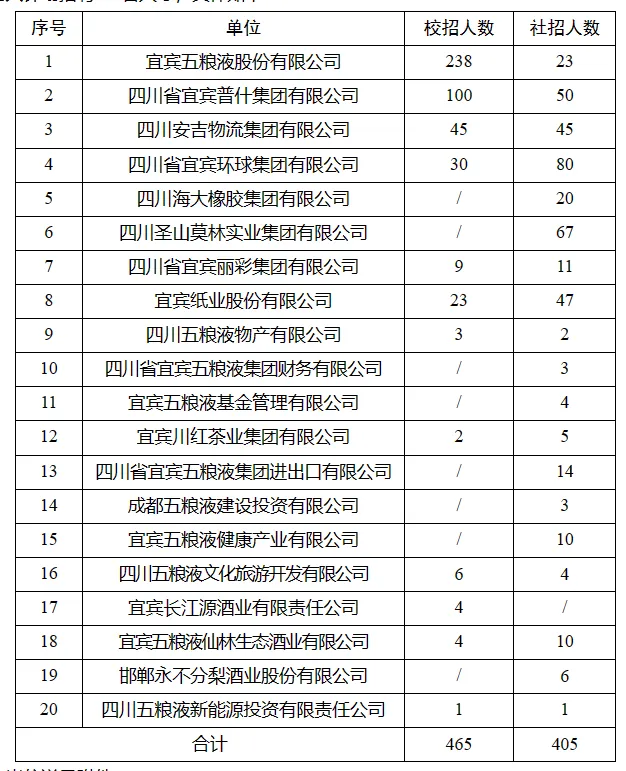 根据五粮液集团公司(以下简称“公司”)业务发展需要,为深入实施人才强企战略,筑牢公司人才支撑,决定招聘一批技术和管理人才。现将具体事宜公告如下。