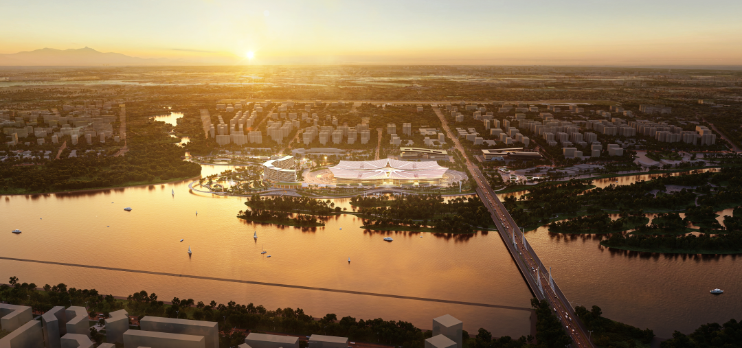 由法国VP与中国建筑科学研究院联合体共同设计的南阳国际会展中心方案,在竞赛阶段中拔得头筹。该项目坐落于在南阳市的白河畔,与周围自然景观相得益彰,如一首精致的诗篇,将历史的烟云和现代的风貌完美地融为一体。