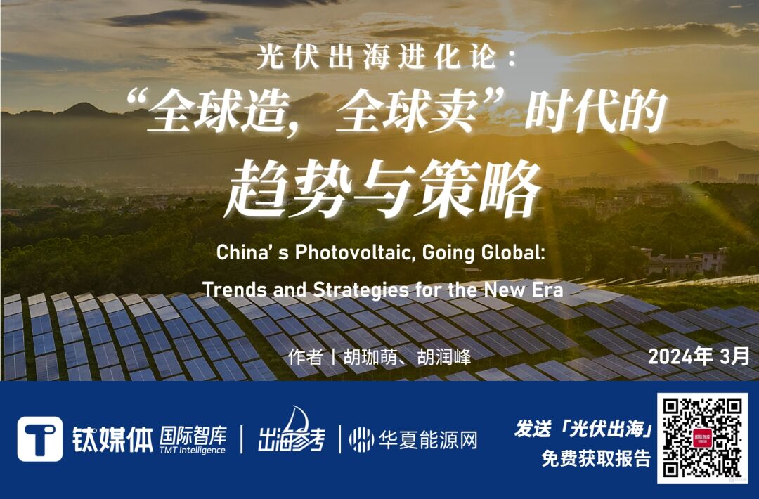 钛媒体国际智库、出海参考和华夏能源网联合重磅发布《光伏出海进化论:“全球造,全球卖”时代的趋势与策略》报告。在公众号后台发送关键词“光伏出海”,即可获取报告全文。