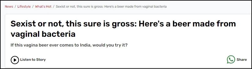 两年前,她曾经在线销售自己放的美屁,一罐售价高达999.99美元,仍有不少铁粉激情下单。这位美女主播泡澡剩下的热水也不会回归下水道,而是标出99.99美元的粉丝价,放在网上大卖特卖。或许正因为单打独斗的生产效率有限,气体浓度或泡澡水的杂质都没有统一标准,这次她决心把好品控的关卡,引入成熟的产业线打进酒类市场。然而,利用女性si处乳酸杆菌对啤酒进行发酵,这一灵感并非来自于凯特琳。早在2018年,波兰华沙一家名为“The Order of Yoni”的啤酒厂就推出si处啤酒,令它进驻卡托维兹市的各大酒吧。在梵语和印地语中,Yoni代表女性生殖器,有yindao、子宫的含义,这正是si处啤酒的酸味发源地。该酒厂坚持多年深耕垂直领域,并且大方地把生意经写在厂牌“The Order of Yoni”里,顾名思义,就叫si处的订单。当si处啤酒还停留在想法层面的时候,就有媒体不断叫衰。比如《今日印度》网站直呼恶心,还质疑波兰的si处啤酒难以撬开印度男人的嘴。- 不管是否有性别歧视,这确实很恶心:这是一种由si处细菌制成的啤酒