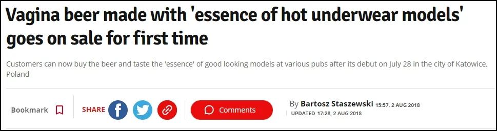 当时,si处啤酒创始人沃伊切赫·曼在网上发起众筹,仅仅筹集到1578 欧元,而目标金额是150,000 欧元。 “我们设法找到了一位相信这个项目、并在经济上支持我们的投资者。”沃伊切赫说,这才让他的si处啤酒梦想走进现实。光看名字就知道,si处啤酒注定是一款极具争议的饮品。有人想不通它为什么存在,就有人跃跃欲试,敢为人先,只关心生产过程是否卫生,以及喝完是否影响生殖健康。创始人沃伊切赫·曼认为,喝si处啤酒比更根源的赏味方式要卫生、轻松、健康。他解释,贡献风味的女士们先经过全面体检,接着由妇科医生用子宫颈抹片进行检查、收集si处菌群。再之后,由实验室进行分离、提纯、鉴定、繁殖,最终产出足够的纯乳酸杆菌,用于批量帮助啤酒轻度发酵,赋予它酸味的余韵。它包括宝琳娜、莫妮卡和帕特里夏,她们听起来就像会在你梦中出现的丽人。瓶身上的贴纸是双层的,撕开第一层能看到穿着内衣的模特辣照,写着她的芳名,时刻提醒你饮酒思源。 酒瓶标签上会写着“你喝的是莫妮卡的精髓”,并展示双人图解,还贴心地附上文字说明,“品酒时的最佳亲密姿势”。品酒师诺伯特·盖扎深信,si处啤酒具有抚慰灵肉的效果,你能感受视觉和味觉上的双重冲击,几乎无法克制自己勃发的想象。在波兰,si处啤酒一经推出,酒厂很快就收到数百封问询啤酒的电子邮件,以及背后大量准备订购的经销商。沃伊切赫在波兰卫星通讯社的采访中表示,他认为si处啤酒是对女性气质的钦佩、尊重的颂歌。沃伊切赫的创业灵感来自于一杯带酸的比利时啤酒,他查询后发现是乳酸菌造成的,而且女性si处内同样有乳酸杆菌——他瞬间感觉到酒和女人之间的微妙联系。沃伊切赫认为,si处啤酒更像是一种啤酒形式的感官体验。正如The Order of Yoni酒厂所宣传的那样,喝下这款酒的男人们需要释放想象。这恰好也是现实世界的残酷面,大众无法拥有大众情人,普通男人别说有一亲芳泽的机会,就连见女神一面都算命运垂怜,或者对自己钱包下了狠手。而一瓶si处啤酒的价格为 25 兹罗提(约5 英镑),与一瓶普通葡萄酒的价格相同。在负责寻酒和记录酒鬼感悟的Untappd博客网站,si处啤酒拿到3.05的综合评分。勇士们在各类酒馆或者在家品尝这款奇酒,发图宣布自己再次赢得男人的勋章。很多客人喝si处啤酒不是为了追求味道,可能是为了一段缠绵心跳的回忆,或者为了陷入遥不可及的梦境,或者只是为了好玩。也有人情愿当个怂包,自己不沾一星半点,却乐于向周围人宣传它的盛名——世界上第一款含有si处乳酸的啤酒。遗憾的是,对于想象力或相关经验匮乏的人来说,这杯酒很难留下太深刻的印象。格热戈日·马耶夫斯基是在波兰第一批尝鲜si处啤酒的客人。“人们会出于好奇而尝试si处啤酒,但我不认为它会成为酒徒桌上的常客。”格热戈日说。该内容为公众号beebee星球原创,未经授权请勿擅自转载。供应商合作请发邮件 toismarketing@thetois.com