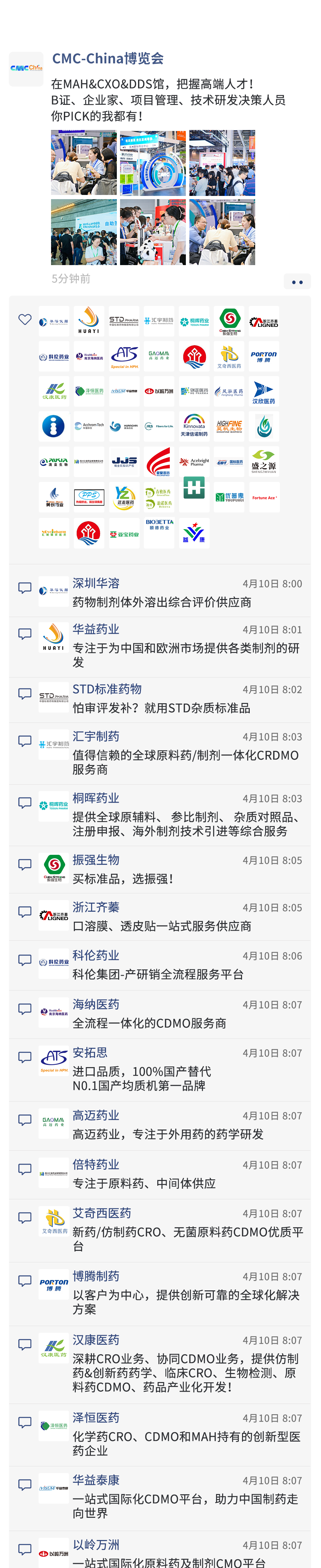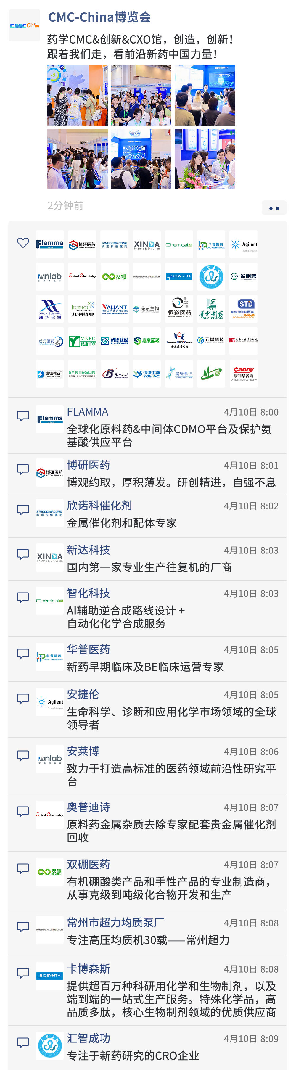 CMC-China博览会,由药融圈在2019年创办,在中国医药产业创新发展的大浪潮中,茁壮成长,脱颖而出,已经成为国内生物医药领域大型年会的知名品牌。