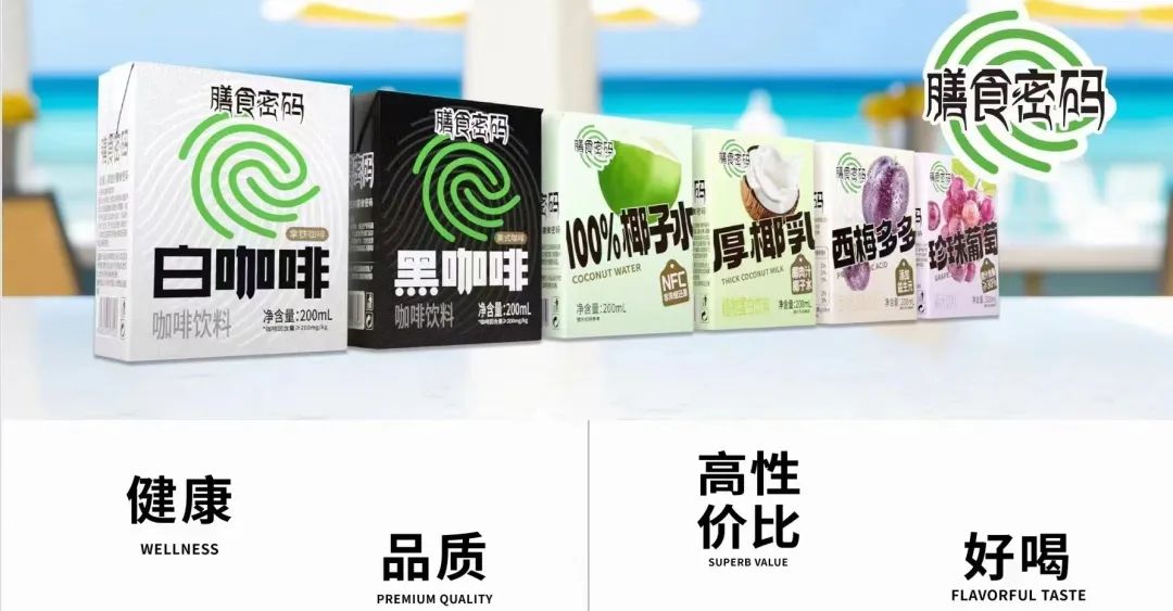 主打的就是只生产高质低价的趋势爆品,目前上市的产品有厚椰乳、椰子水、黑白咖啡、葡萄汁饮品、西梅汁饮品