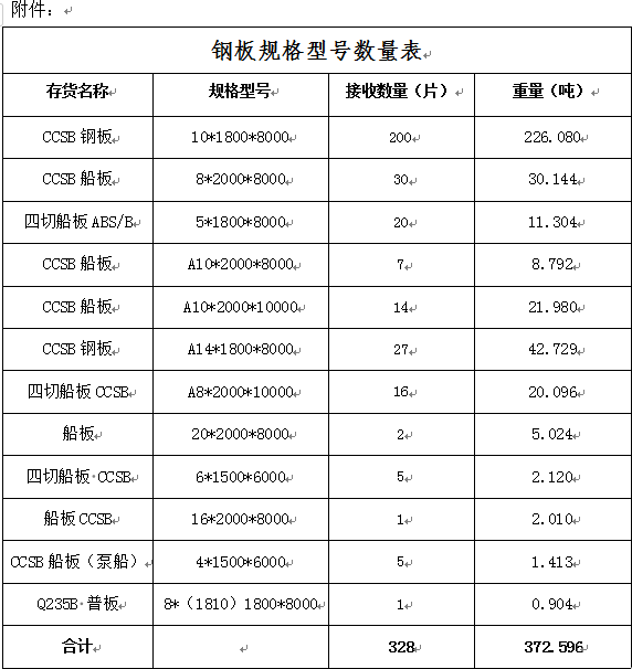 我司现有一批船用钢板,规格、型号及数量详见附件,拟采用询比价方式进行销售,邀请潜在购买方进行报价。