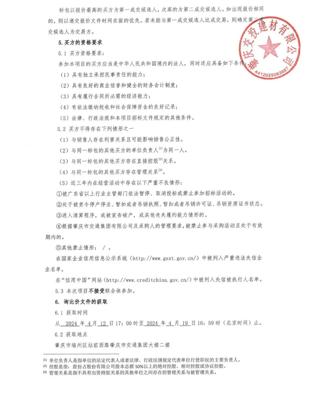 ④根据肇庆市交通集团有限公司及采购人的管理要求,被禁止参与采购活动且处于有效期内的。