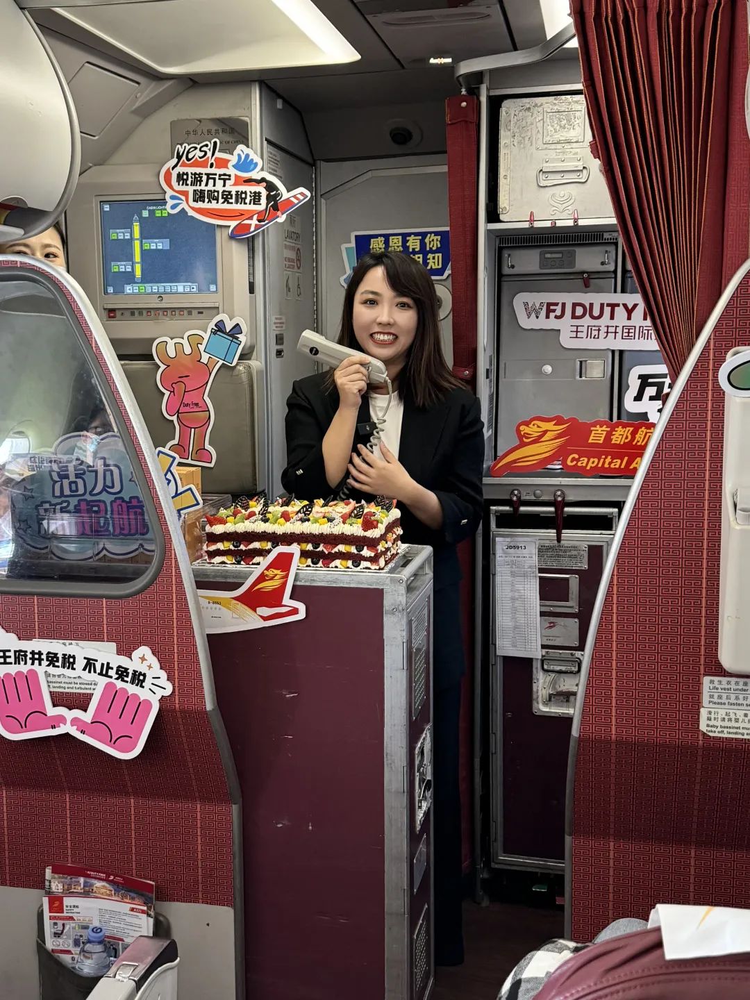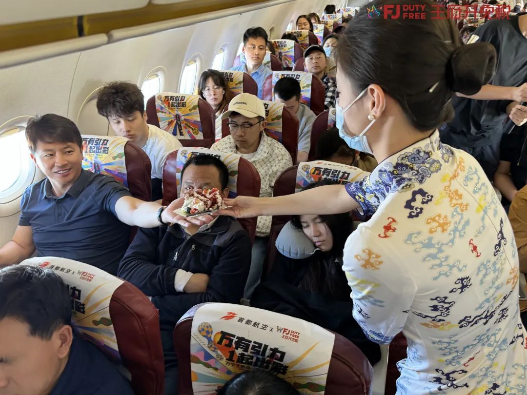 王府井免税消博会主题航班由王府井免税与首都航空联手深度合作,为乘机旅客带来了颇具特色的机上主题活动与乘机体验。