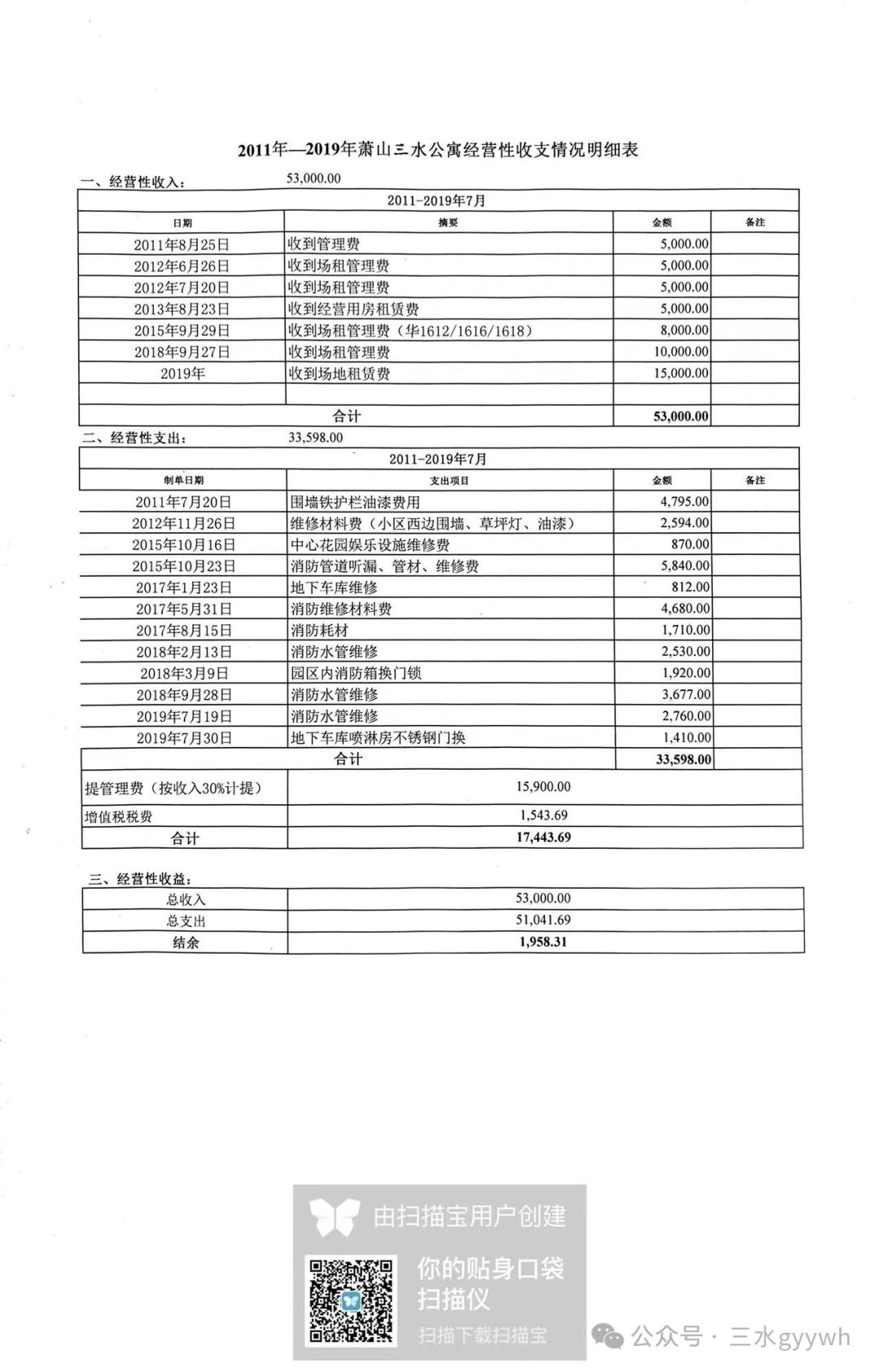 为保障业主知情权,现将物业代管期间的经营性收入收支情况进行公示,请业主审查。