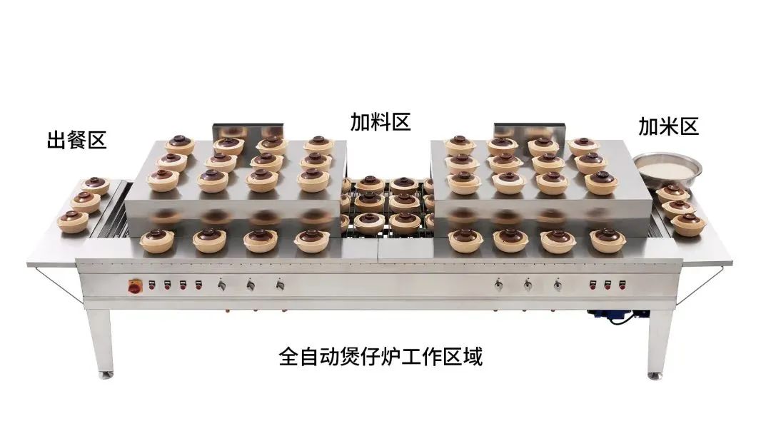 其次,煲仔正品牌自主研发了一套全自动智能煲仔炉,真火真砂煲,生米生肉、现点现煲,无需大厨,后厨仅需配备2~3名工作人员即可达到1小时出餐216份的出餐量,打破了先前煲仔饭出餐慢的技术限制,保障煲仔饭在快餐市场的竞争力和连锁发展的可能性。