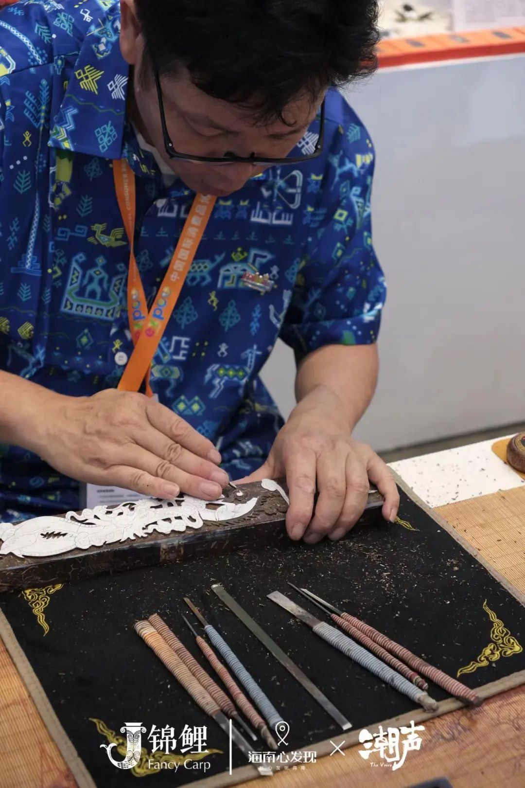想要对海南的传统非遗文化有更直观的了解的话,沿着海南国货潮品馆的外部就能观赏到海南非遗技艺的现场表演喔~