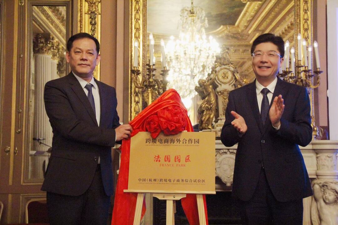 杭州市商务局局长王永芳分别与法国易能集团、PARISLOOK(印象巴黎)集团等企业进行数贸会合作项目签约。