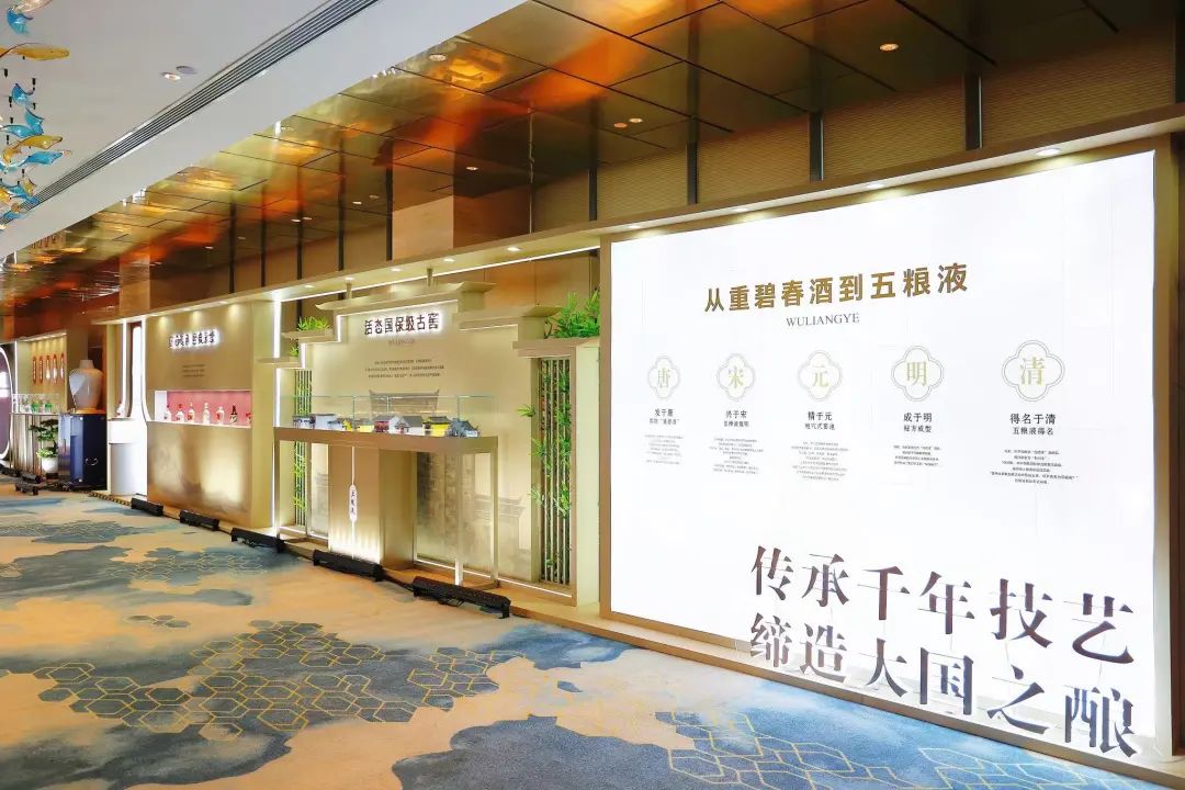 国际名酒的展示,让来宾在进场前驻足观赏,深入了解五粮液诞生地酒都宜宾和国际名酒的风姿。