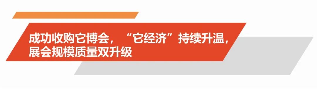 作为国内会展行业领先的上市公司,东浩兰生会展集团拥有会展业全产业链资源,业务涵盖展览组织、展馆运营、会议活动赛事、会展服务等。在战略投资它博会后,依托丰富的行业资源和办展经验,为它博会注入了新的活力和动力,以“它经济”加快会展集团市场化进程。在新征程路上,会展集团持续巩固和提升现有业务,精心培育更多具有鲜明特色和强大影响力的自主IP项目,打造一个更加完整、高效、协同的会展产业生态圈,实现会展集团向更高质量发展。