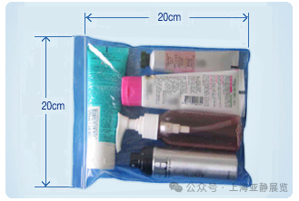 3-包装要求:每位旅客所有的液体容器应宽松地放置于最大容积不超过1升、可重新封口的透明塑料袋中,塑料袋应完全封好(机场安检处可免费提供)。每位旅客每次只允许携带一个透明塑料袋。超出部分应办理托运;