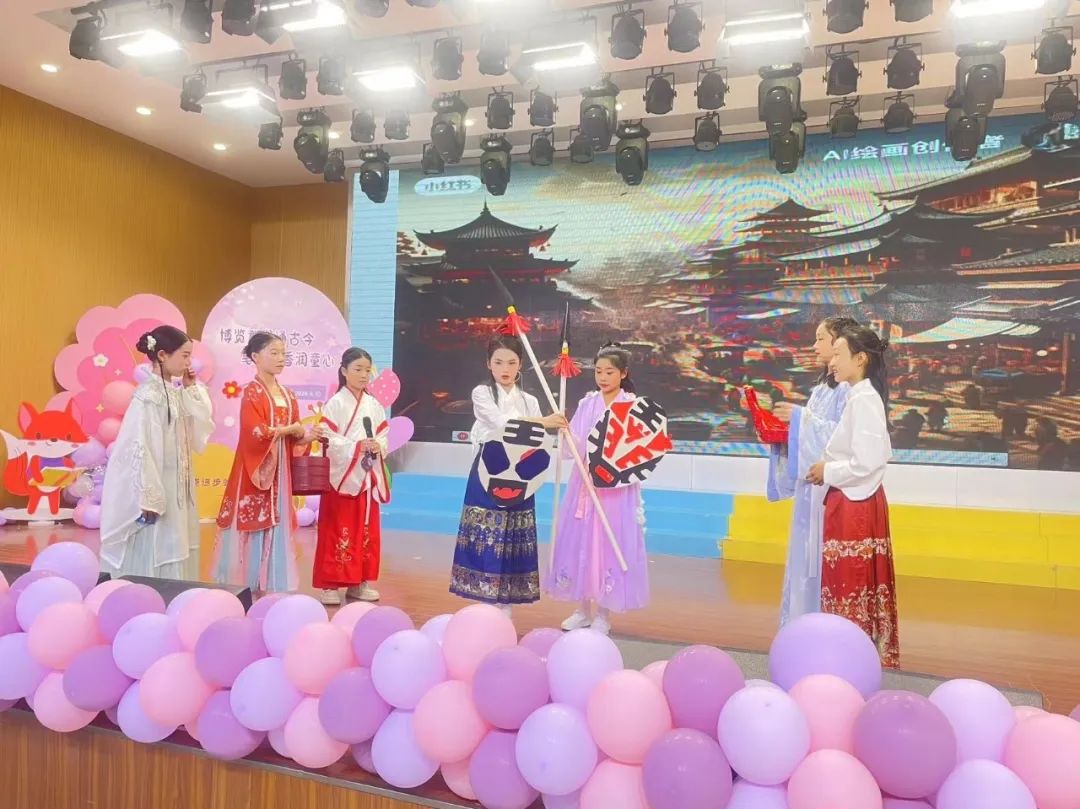 三两句道出古今事,五六步走过万里程。一场精彩的历史故事《完璧归赵》,孩子们用最生动的表演把蔺相如、赵王、秦王等人物演得栩栩如生,赢得了阵阵掌声。