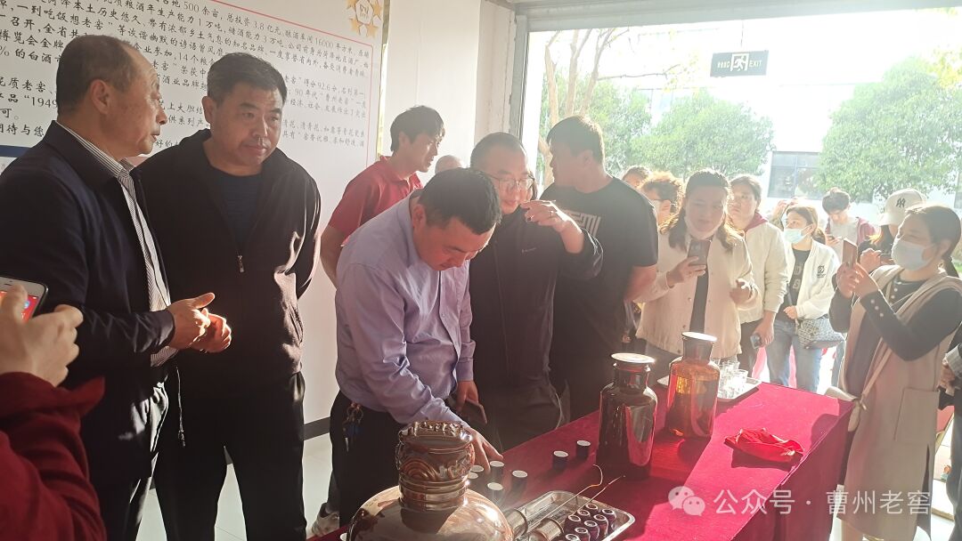 一行人来到了酿酒车间。这里,是曹州老窖的灵魂所在。酿酒师傅们凭借多年的经验和精湛的技艺,将发酵好的酒醅进行蒸馏、分级摘取,最终酿成了那独特风味的曹州老窖酒。