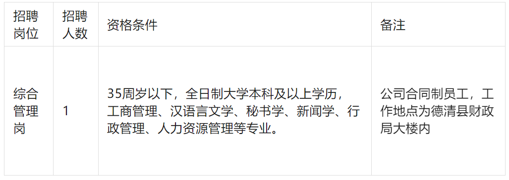 德清县国有资产经营有限公司招聘公告