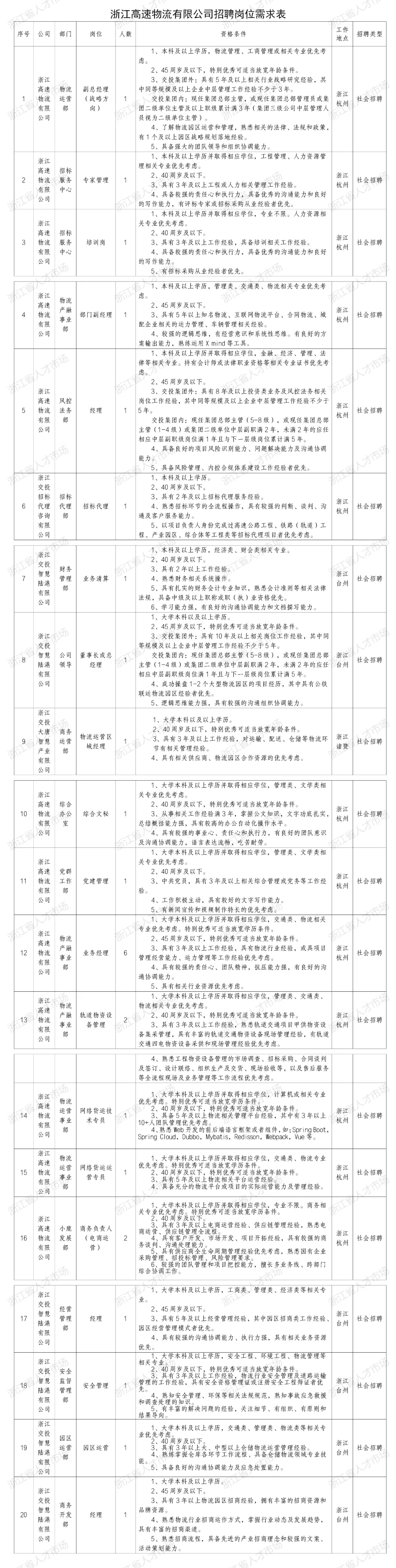 (二)符合岗位招聘条件者,请将岗位应聘表(见附件)、身份证、毕业证书、获奖证书及相关资格证书等材料原件的复印件寄至:杭州市上城区五星路199号2号楼13楼高速物流公司组织人事部樊女士,邮编:310020。也可将相关材料原件的扫描件(PDF)发送至邮箱:346069948@qq.com。