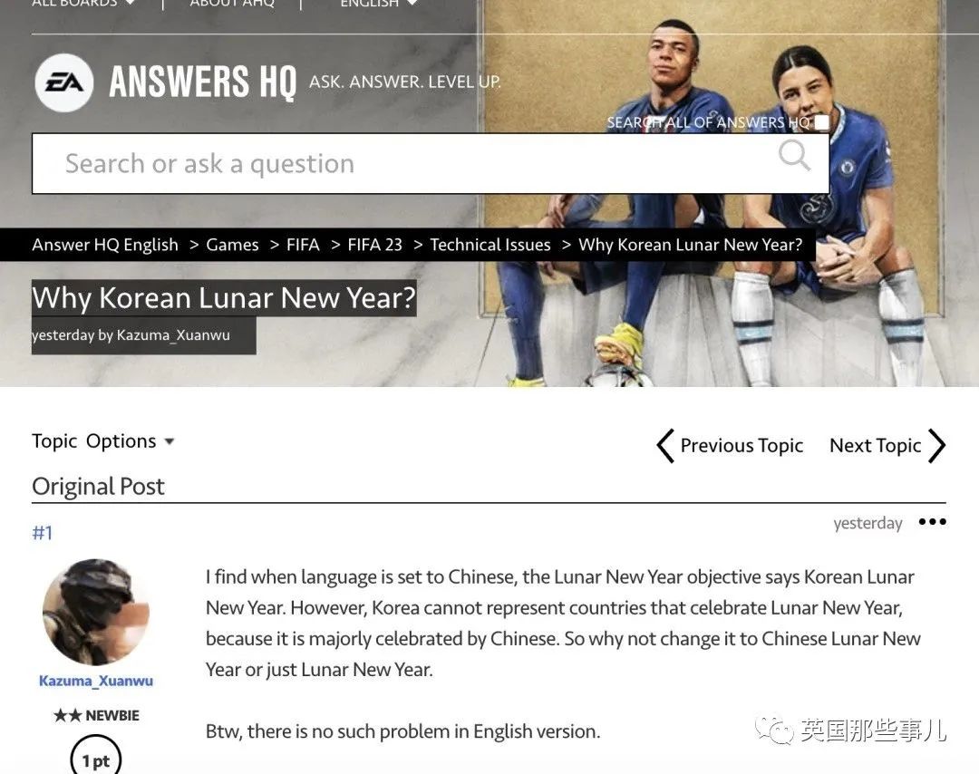 然而,喜庆的日子里,国外的某些个机构却偏偏要在这时候跳出来给中国人添堵。一是EA游戏公司,在他们发布的FIFA23新年特别版活动上,居然赫然写上了“韩国农历新年”(Koren Lunar New Year)的字样…
