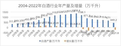 2023年白酒行业产量创历史新低,根据国家统计局公布数据显示,与2023年全国白酒产量449.2万千升相比,较2022年671万千升产量下滑32.9%。随着近年来白酒产能的扩张,以及消费者对品质和品牌的要求提高,白酒消费市场受宏观环境影响,消费整体景气不足,且社会库存较大,资本市场热消退等多重因素叠加影响,2023年白酒规模企业产能创历史新低,达到了2008年前的水平。步入2024年,白酒的产量预计在最近几年规模企业百亿扩产的推动下开始步入上升期。
