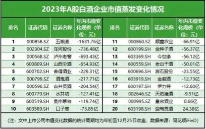 可以说2023年的白酒股票结束了疫情以来的白酒股市疯狂增长的势头,开始不断向下筑底寻找新的支撑点。从目前20家白酒股票的跌幅来看,2024年如果经济刺激及国家股市刺激到位,大概率2024年白酒股票会迎来一个新的增长周期。免责声明:本号所发文章内容仅供学习、交流,并对文中观点保持中立!如有侵犯您的权益请及时联系我们,我们将及时删除。