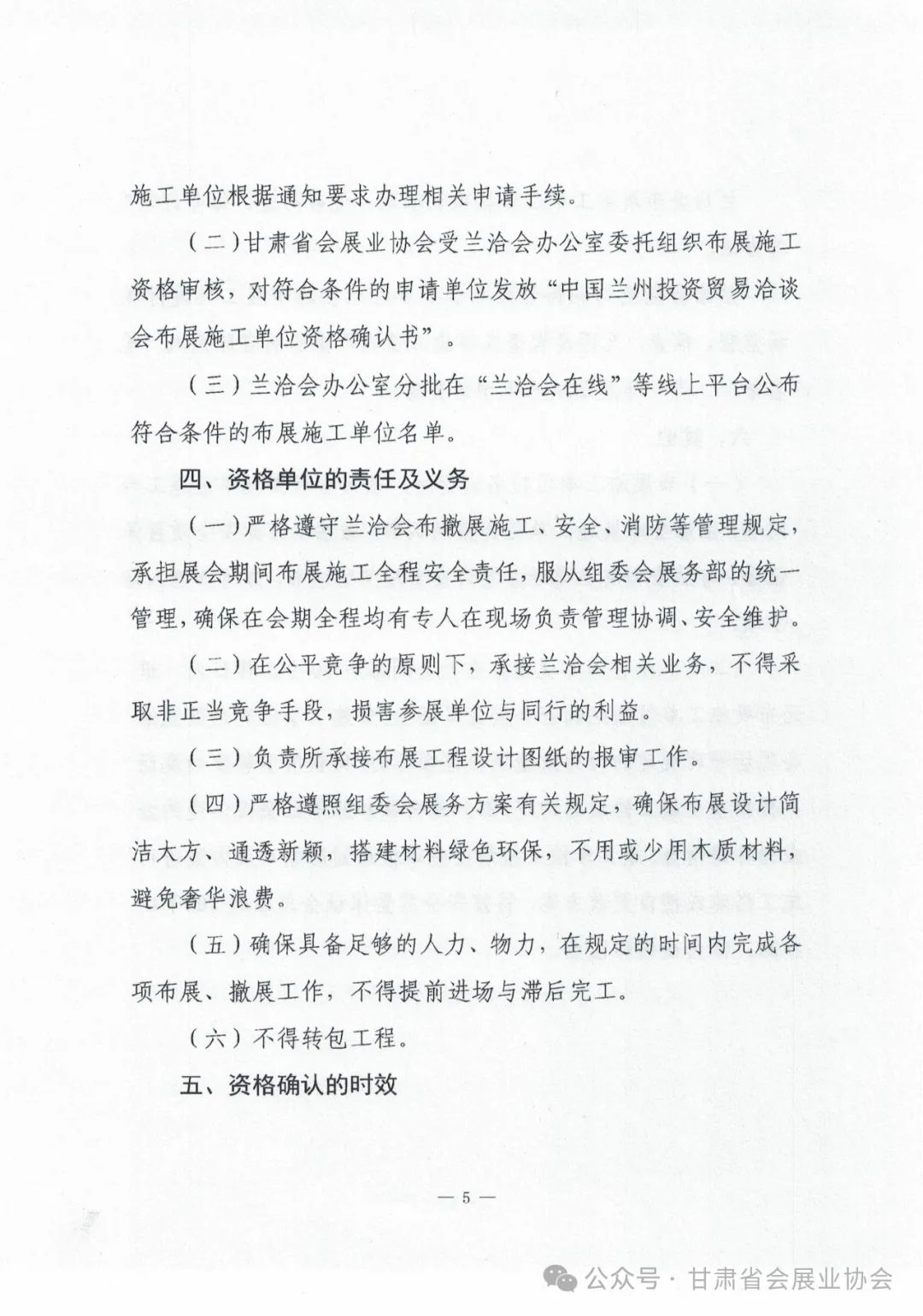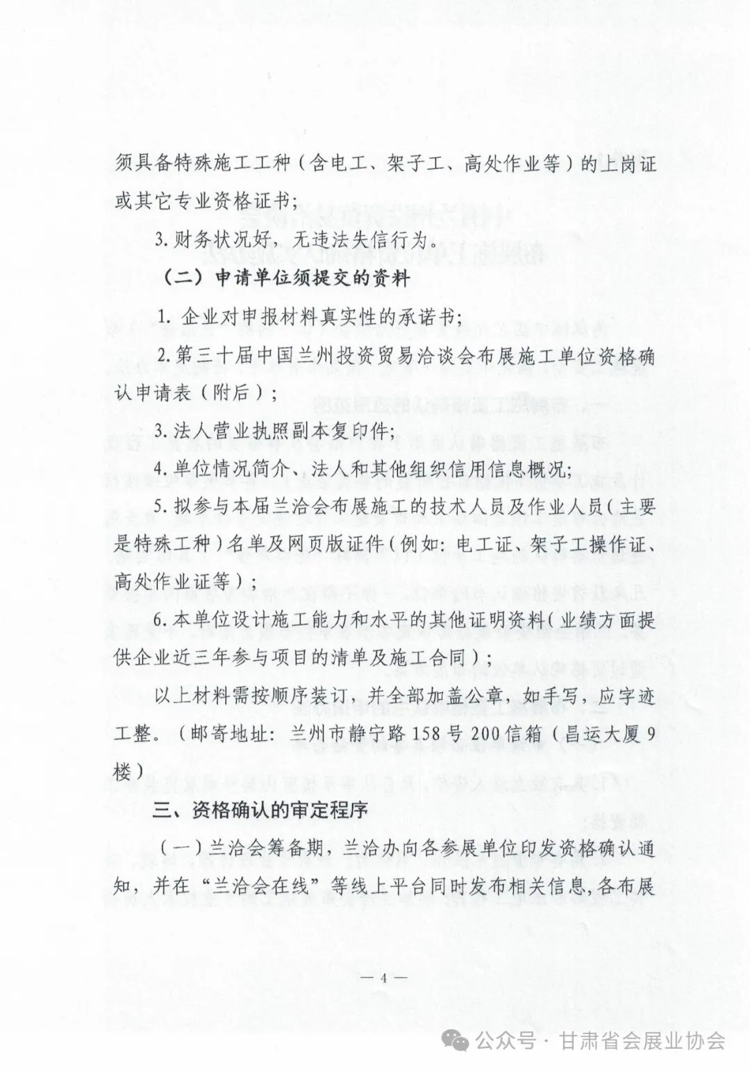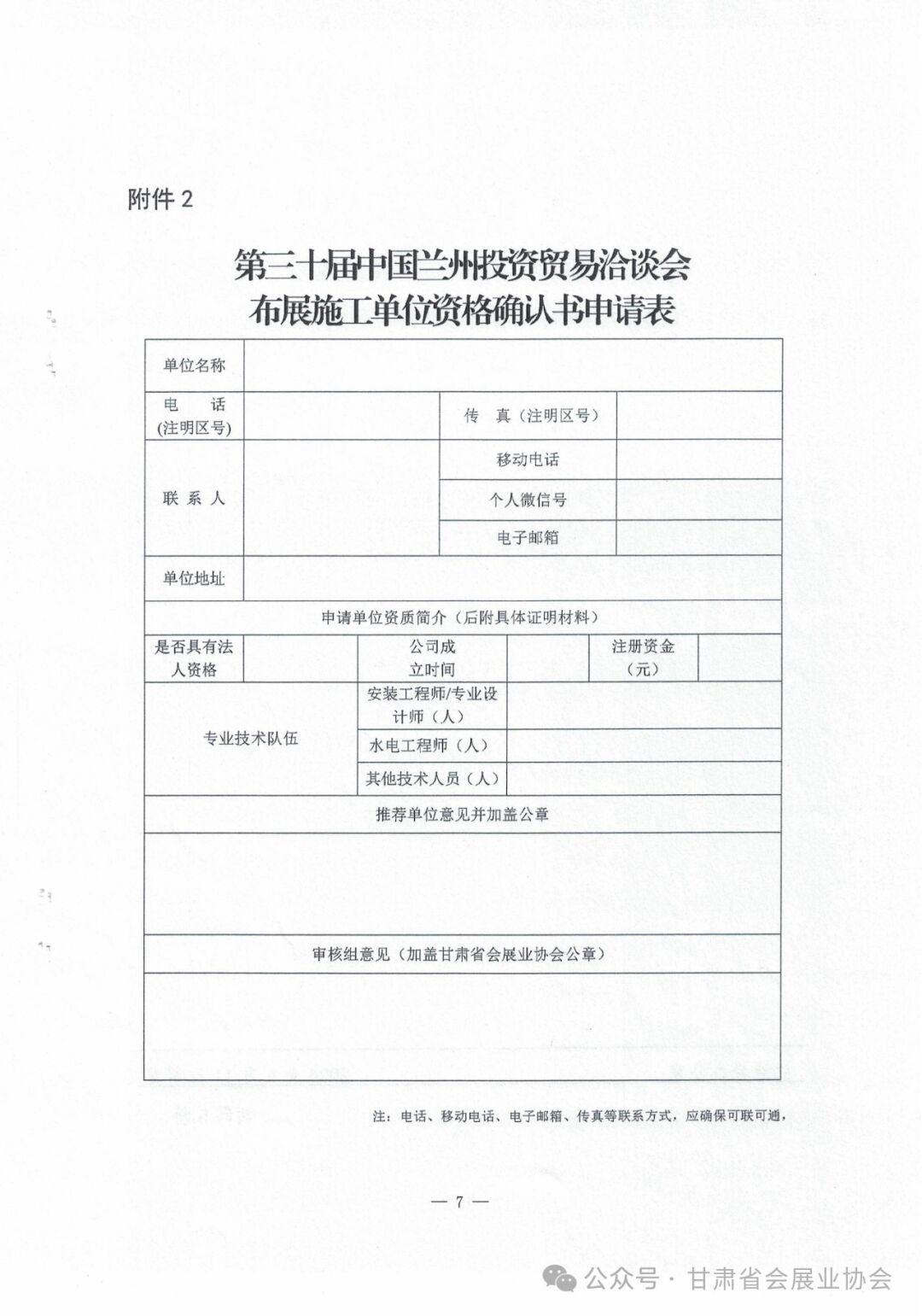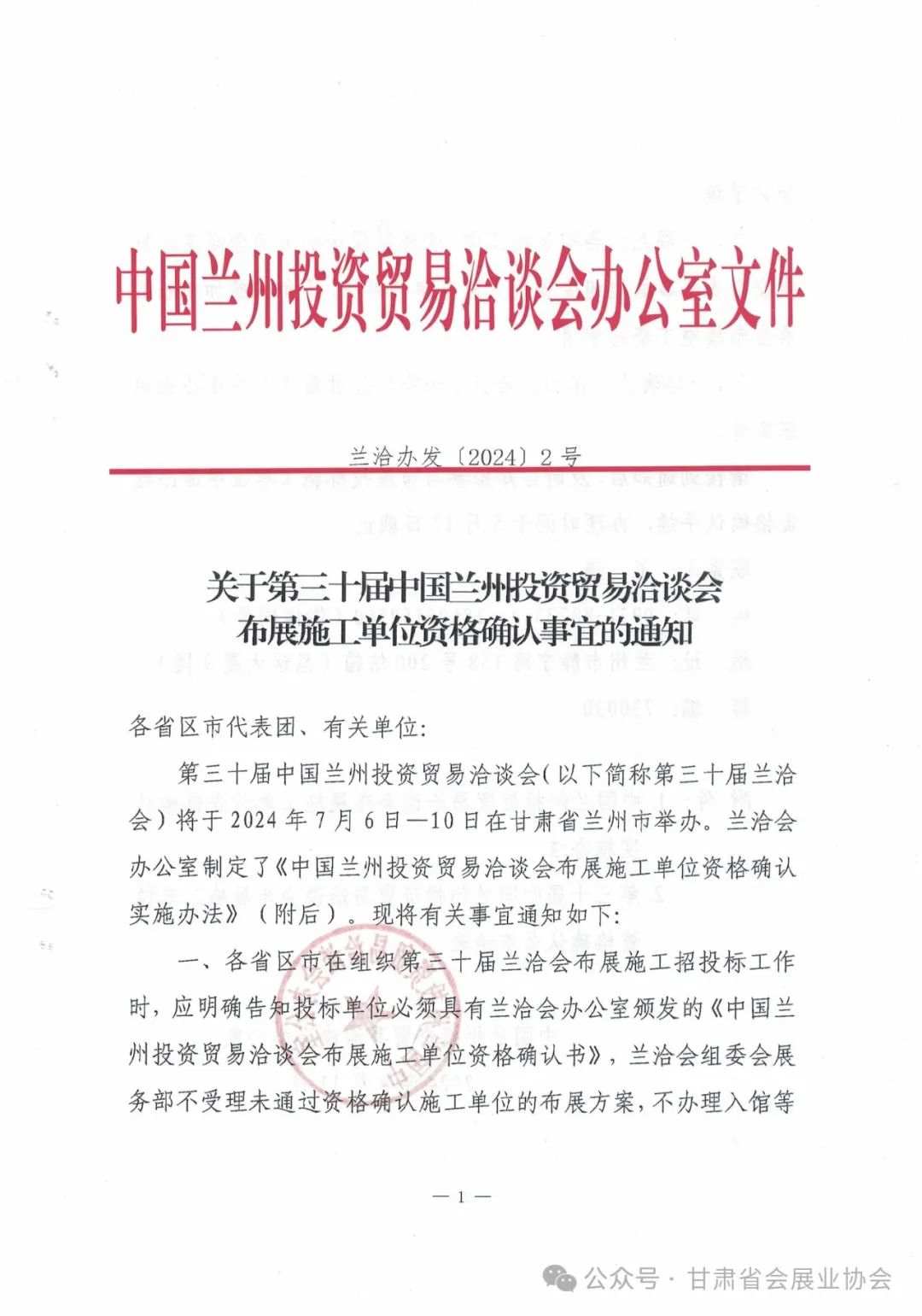 关于第三十届中国兰州投资贸易洽谈会布展施工单位资格确认事宜的通知