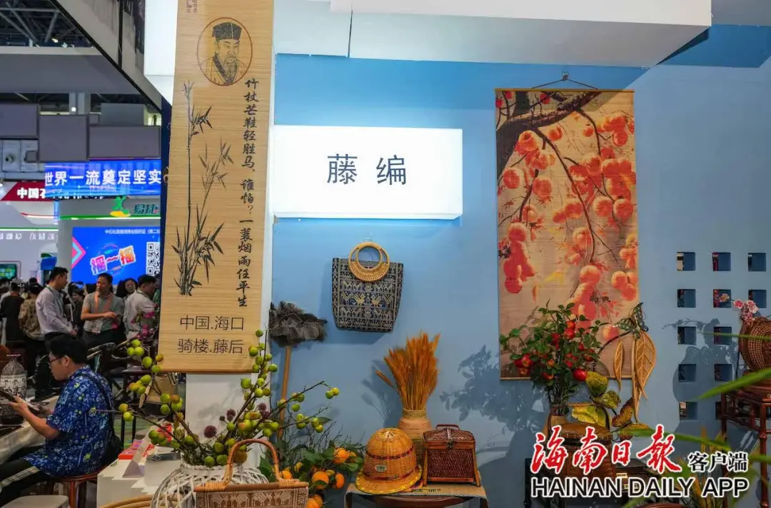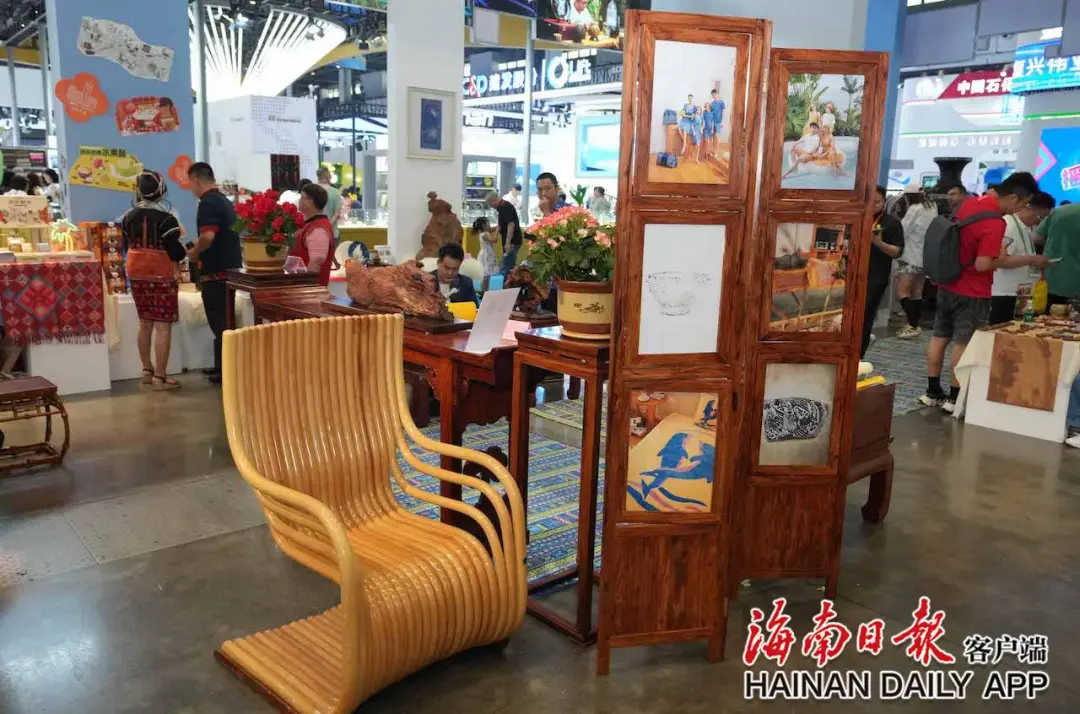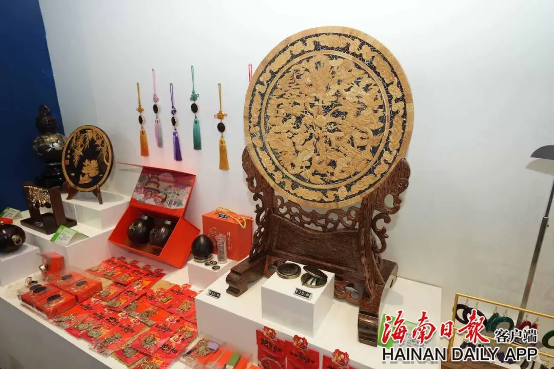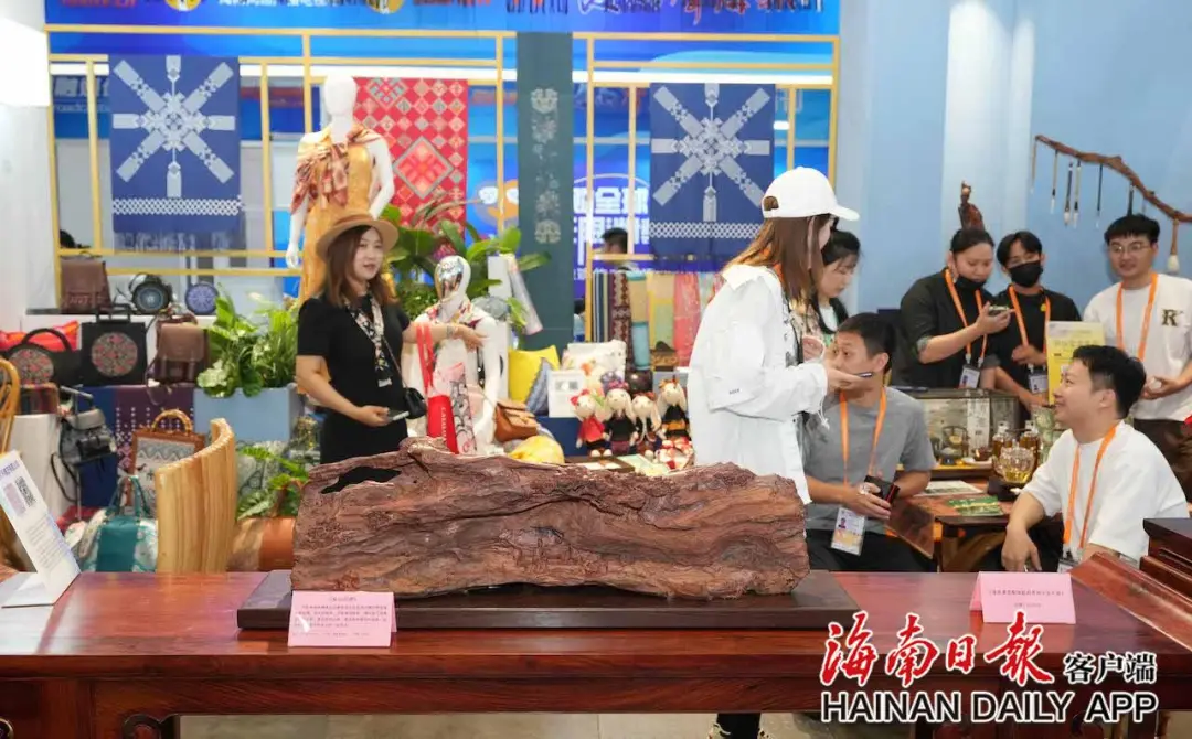 据了解,为了让参加消博会的国内外嘉宾更好地体验海南非遗之美,在国货潮品展示展销区,黄花梨、黎锦、椰雕、藤编、沉香及其文创等海南最具代表性的非遗以“新海南、新时尚、新生活”的展示理念别具一格地呈现给参会嘉宾。“我们希望通过这些兼具视觉审美与文化内涵的非遗国货潮品,宣传海南独特的人文习俗和非遗之美,打造传统文化与现代生活融合发展的‘样板间’,为参会嘉宾多方位呈现海南传统文化的创造性转化和创新性发展新成果。”省旅文厅相关负责人表示。