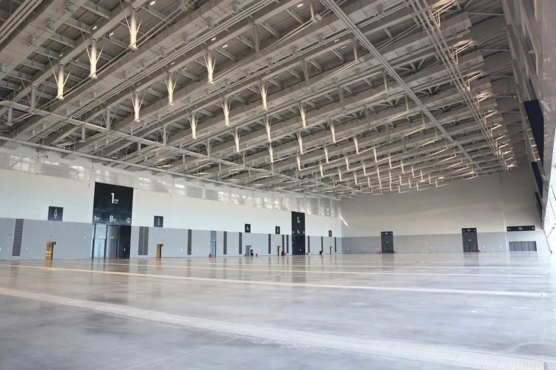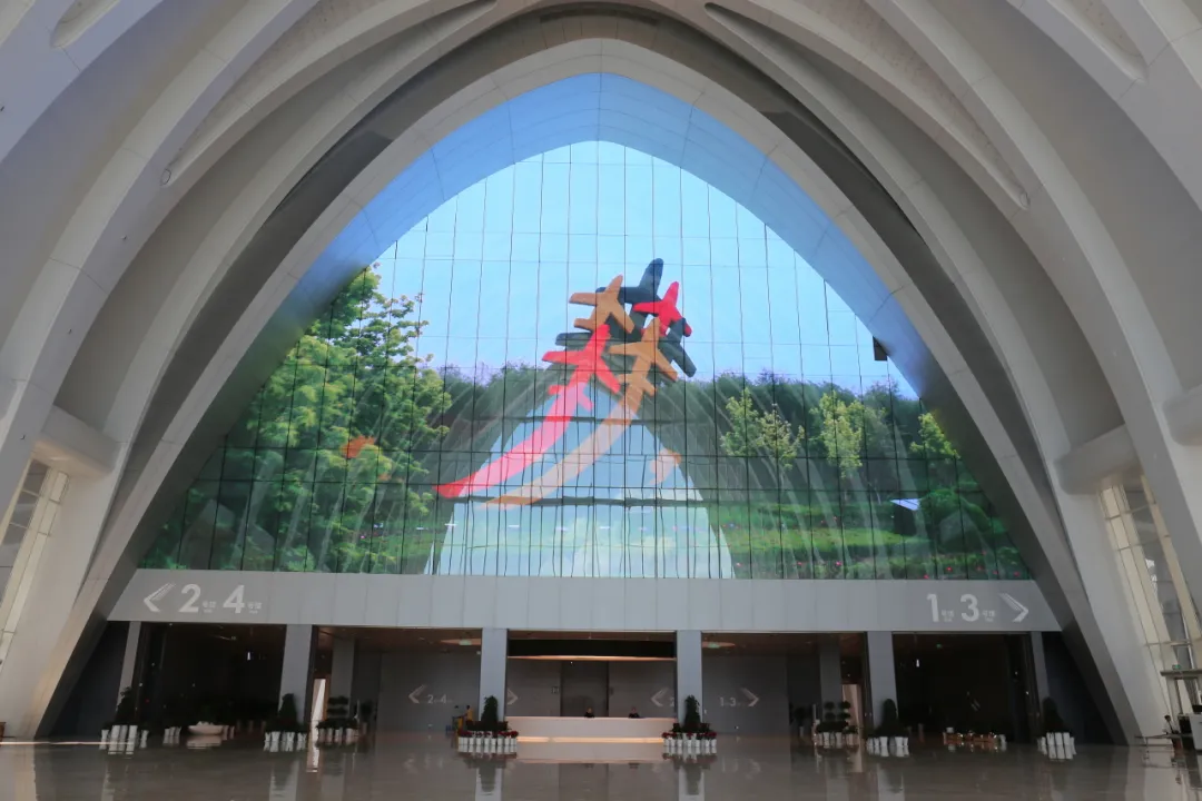 4个展馆成“H”型,分布在会议中心两侧,相对独立又紧密配合。4个展馆的室内展览面积约为4.3万㎡,可容纳2000个国际标准展位,每个展厅的形状统一,均无立柱,有助于提升展览现场的视觉效果。