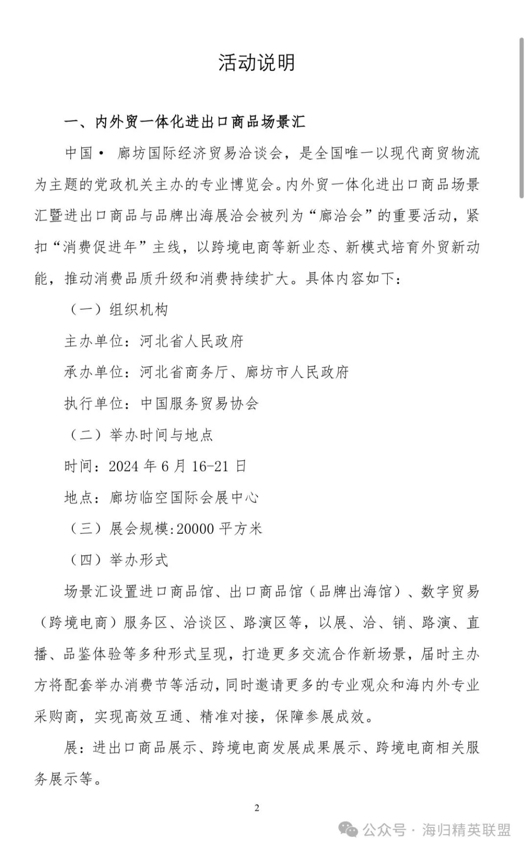 6月16日至21日,中华人民共和国商务部、中华人民共和国海关总署、河北省人民政府共同主办的2023年中国·廊坊国际经济贸易洽谈会(以下简称“廊洽会”)在河北省廊坊市临空国际会展中心举行。以“共建全国现代商贸物流重要基地 共促京津冀协同发展”为主题的这次现代商贸物流业盛会,聚集了近3000名中外企业参会,吸引海内外客商及观众数万人次,公布了100个优质产业签约项目,跨境贸易服务生态圈更是成为大会最大的亮点。