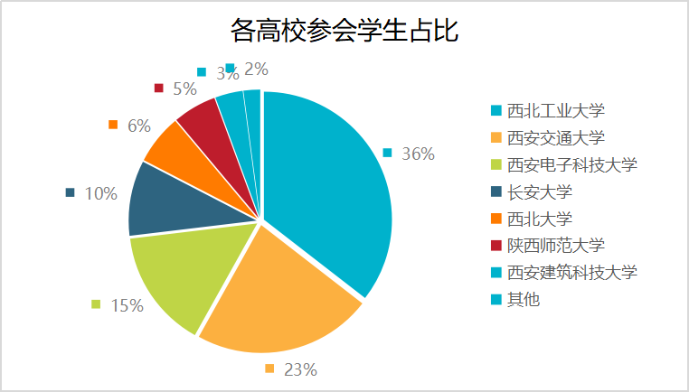 从参会博士生的高校分布来看,参与本次活动的博士生均来自西安地区各大知名高校,其中西北工业大学的博士生占比最高,达到了35.5%,充分展现了该校在博士生培养方面的雄厚实力。紧随其后的是西安交通大学,占比22.6%,其博士生在学术研究和科技创新方面同样取得了显著成果。