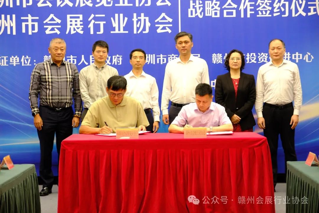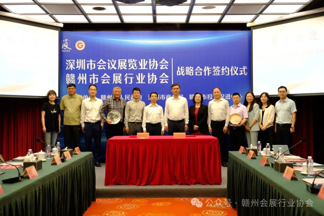 今日,深圳市会议展览业协会与赣州市会展行业协会在深圳会展中心(福田)召开座谈会,并举行两地会展协会战略合作签约仪式。赣州市人民政府党组成员、副市长邹治宇,深圳市商务局党组成员、副局长叶文戈等出席并见证了签约仪式。