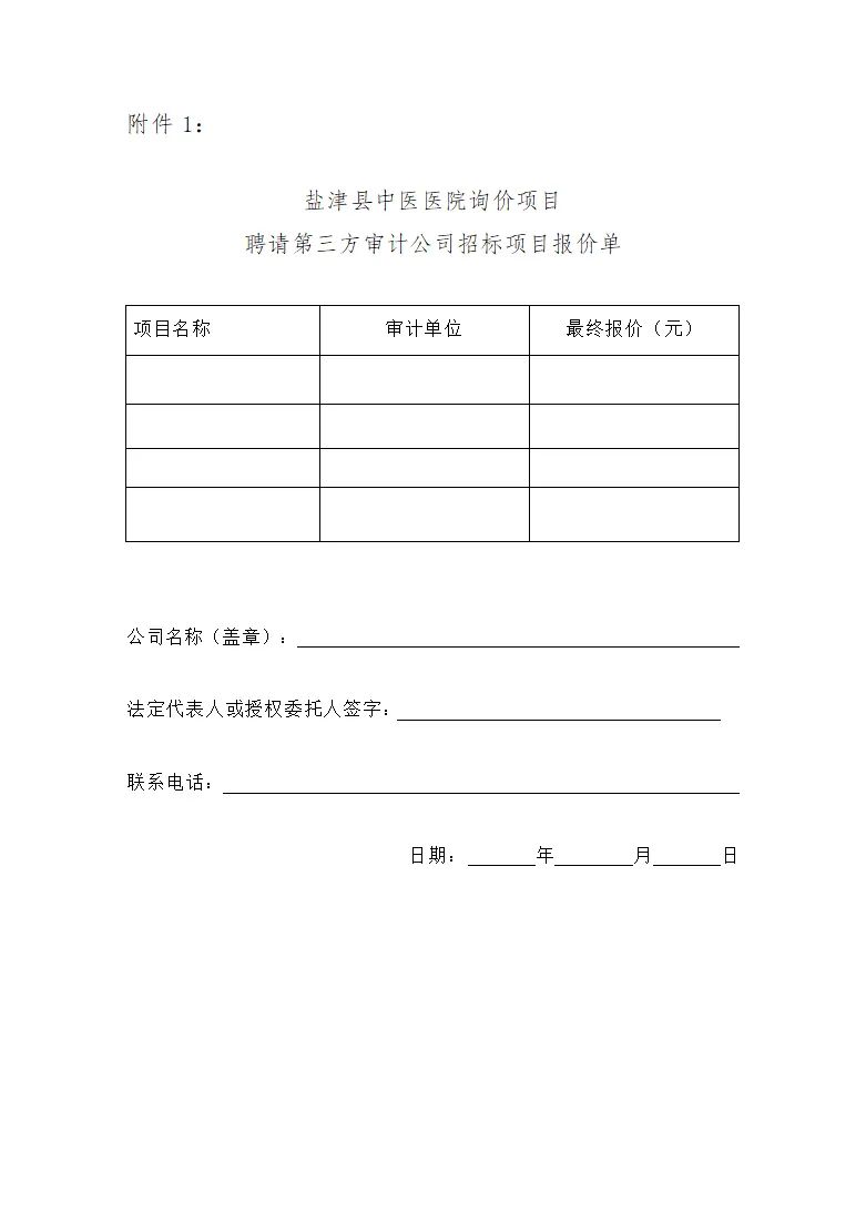 项目名称:盐津县中医医院聘请第三方审计公司项目询价(项目编号:盐津县中医医院-X2024-001)