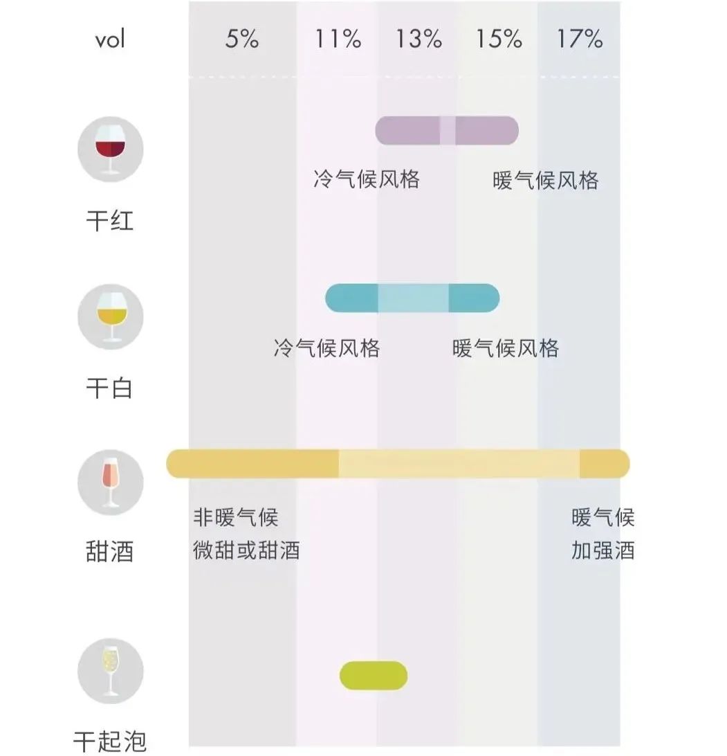 甚至你只是简单的学习了气候的规律后,哪怕通过酒瓶上的酒精度,也能够推测出一支酒的风格大致如何: