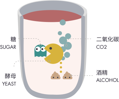 酵母吃糖,排出屎(酒精)和屁(二氧化碳)。