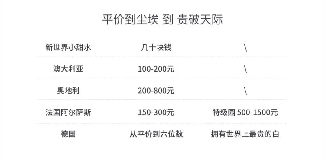 我们甚至会细心到给你总结各种类型酒款的价位区间,比如同样是雷司令,你在不同预算下,应该尝试哪些;而如果低于或超出这个预算,要对一款酒额外留意: