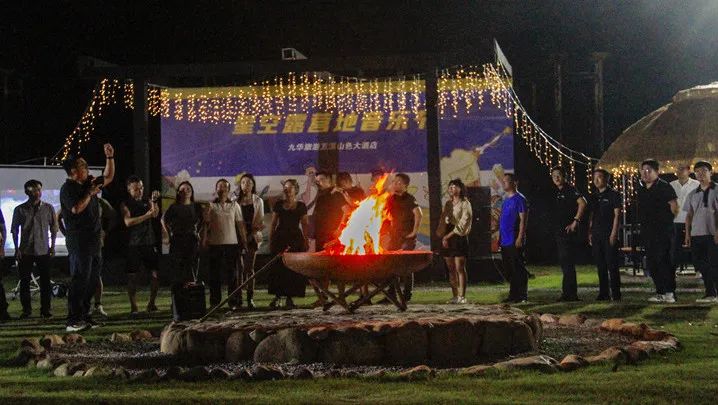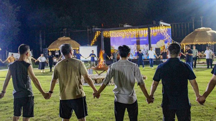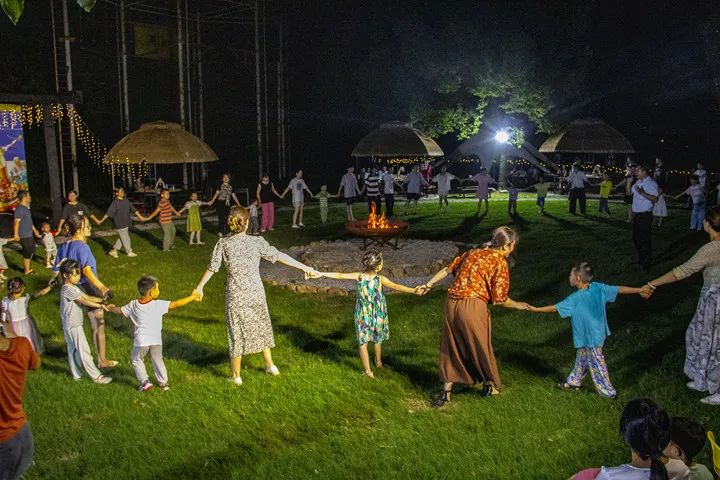 主持人引导大家手拉手围着篝火起舞