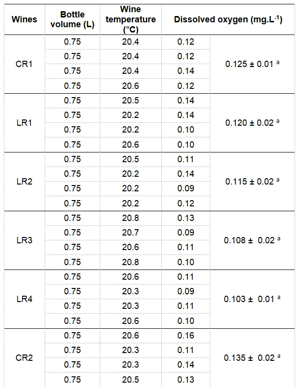 装瓶后,每款葡萄酒的溶解氧浓度见表S1(补充数据)。