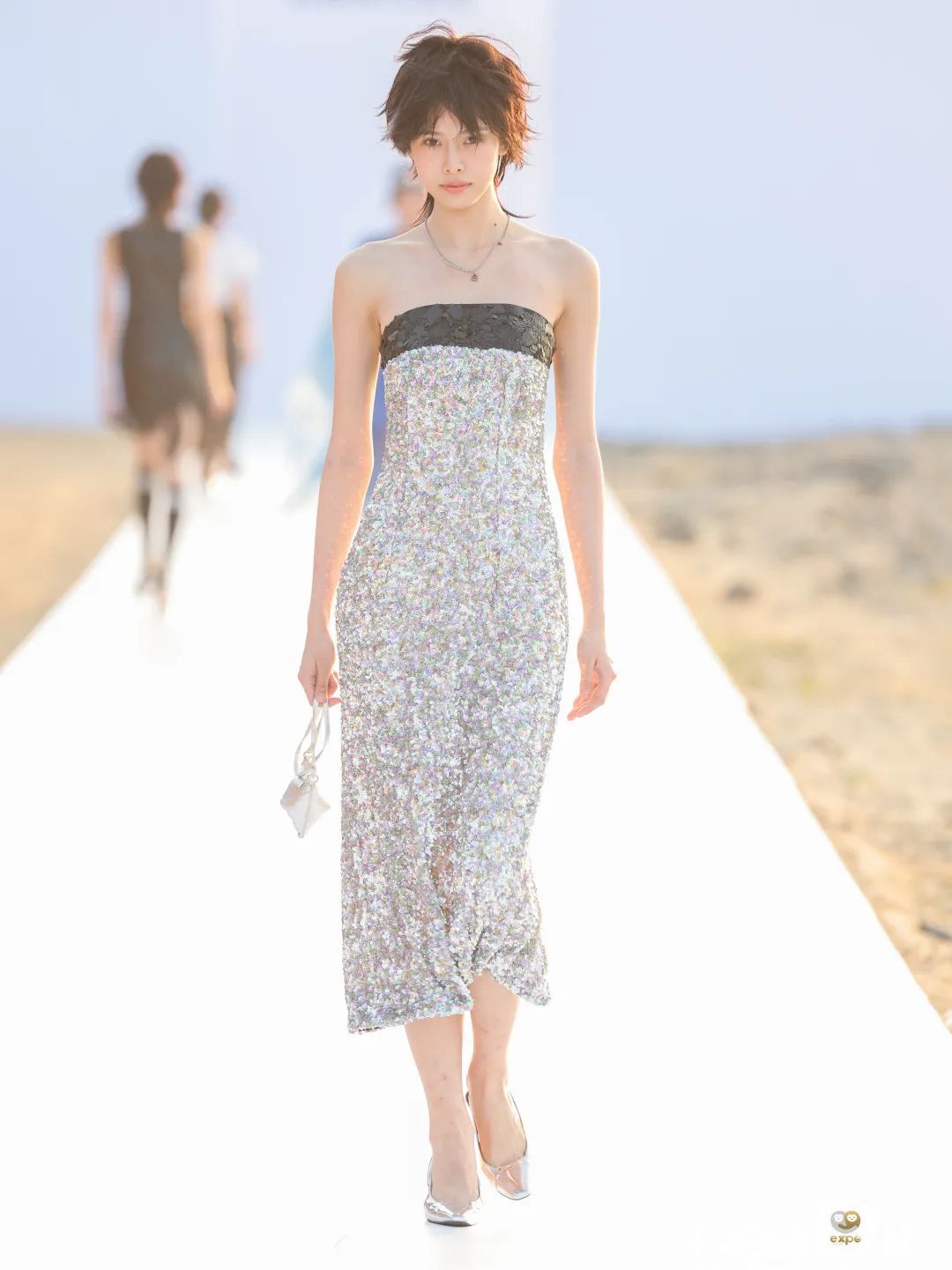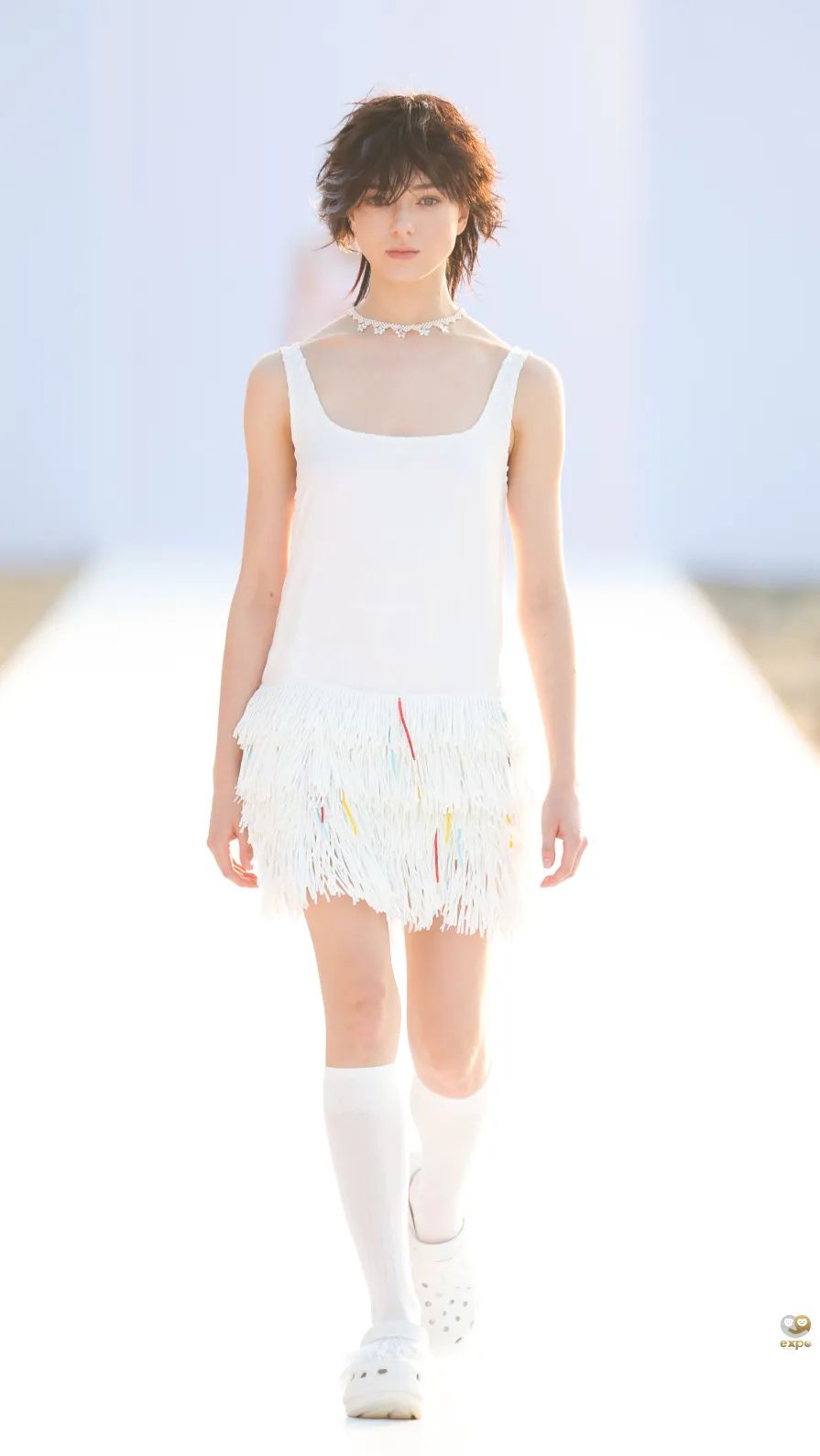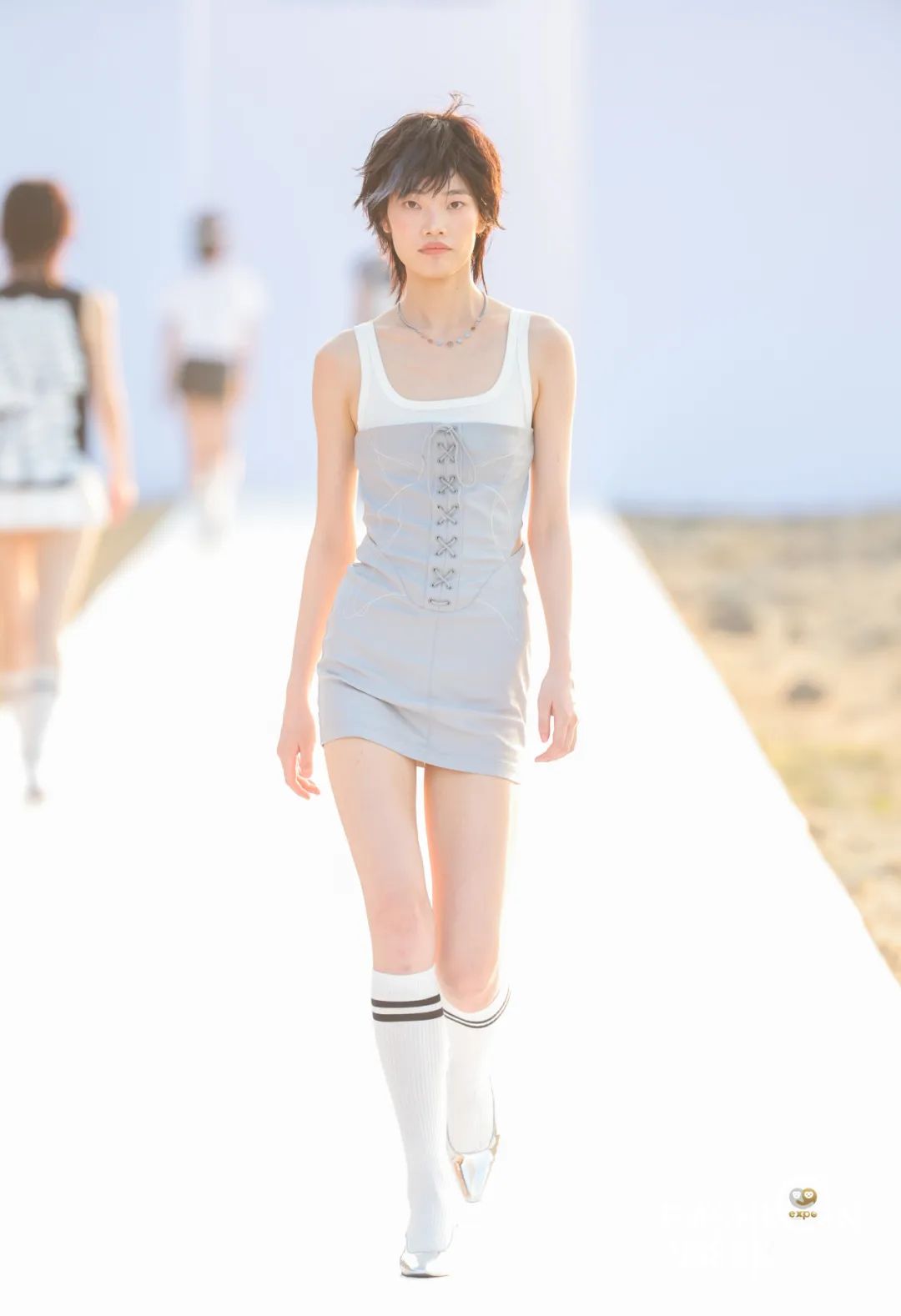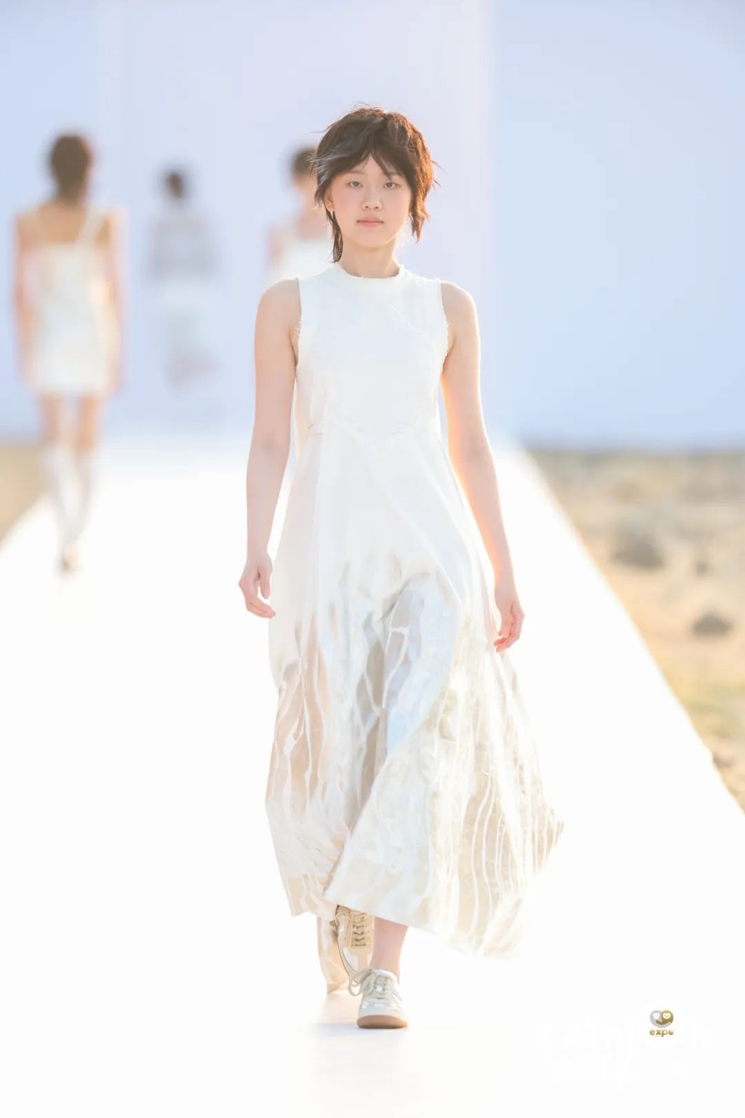 4月16日日落时分,中国设计师杨乐携中国设计师女装品牌AWAYLEE SS2024「Back Youth · 归来少年」系列亮相消博会时装周海滨秀场。突破身份、年龄和性别的边界,回归本真自我,是杨乐本季所表达的主题。从基础的背心、运动风上衣、到不对称设计衬衫裙、钉珠连衣裙,该系列单品秉承以人为本的实用主义精神,廓形干净利落,而流动的印花、绳绣和流苏装饰又为服饰带来少年感满满的灵动韵律。