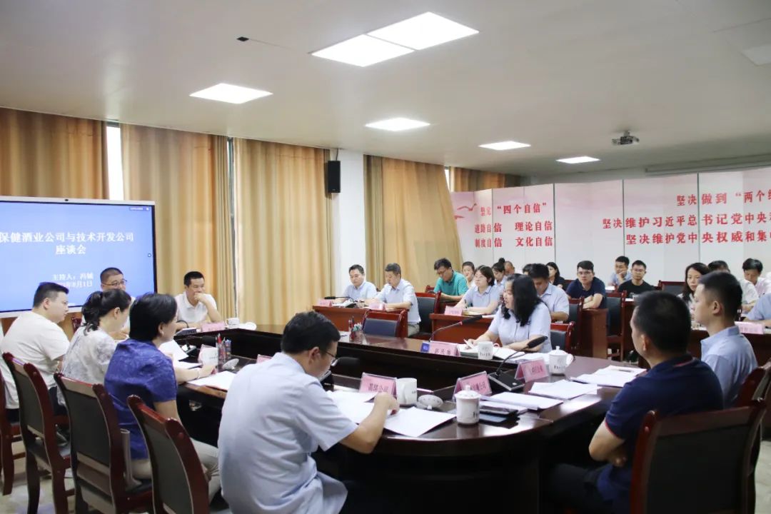 为深入贯彻落实“大集团一盘棋,产业链一条心”战略,加强兄弟单位交流合作,8月1日下午,保健酒业公司与技术开发公司在临租基地三楼会议室举行座谈,双方围绕如何更好促进业务合作,助力公司高质量发展进行了交流探讨。技术开发公司党委副书记、总经理吕丽娟,保健酒业公司副总经理游庆梅出席并讲话,技术开发公司首席质量官骆国素出席座谈。吕丽娟表示,技术开发公司将始终坚持“质量是生命之魂”的质量理念,深入践行五匠质量观,将质量意识贯穿到生产过程各环节,不断提高产品质量,为保健酒业公司高质量发展增添动能。游庆梅对吕丽娟一行到访表示欢迎,她表示此次座谈会通过充分交流,对技术开发公司下属子公司有了更深入的了解,希望双方完善沟通交流机制,落实集团公司目标部署,共同促进双方高质量完成生产经营指标。技术开发公司、保健酒业公司相关部门工作人员参加会议。